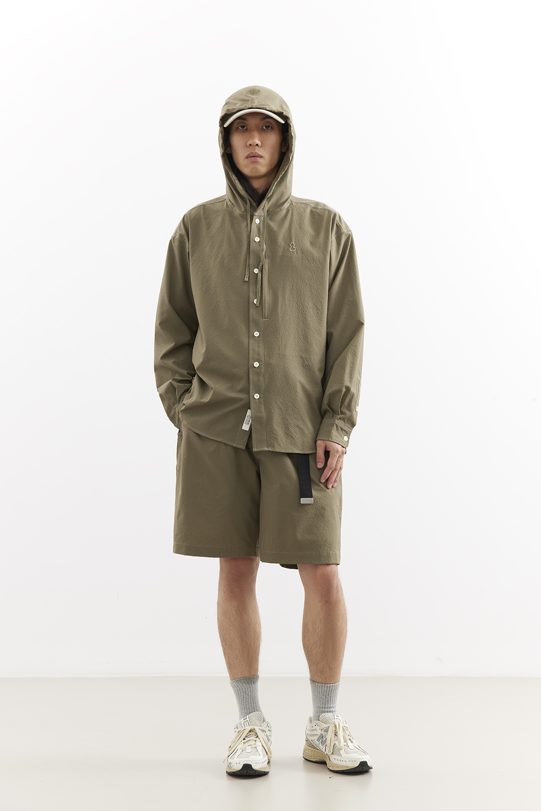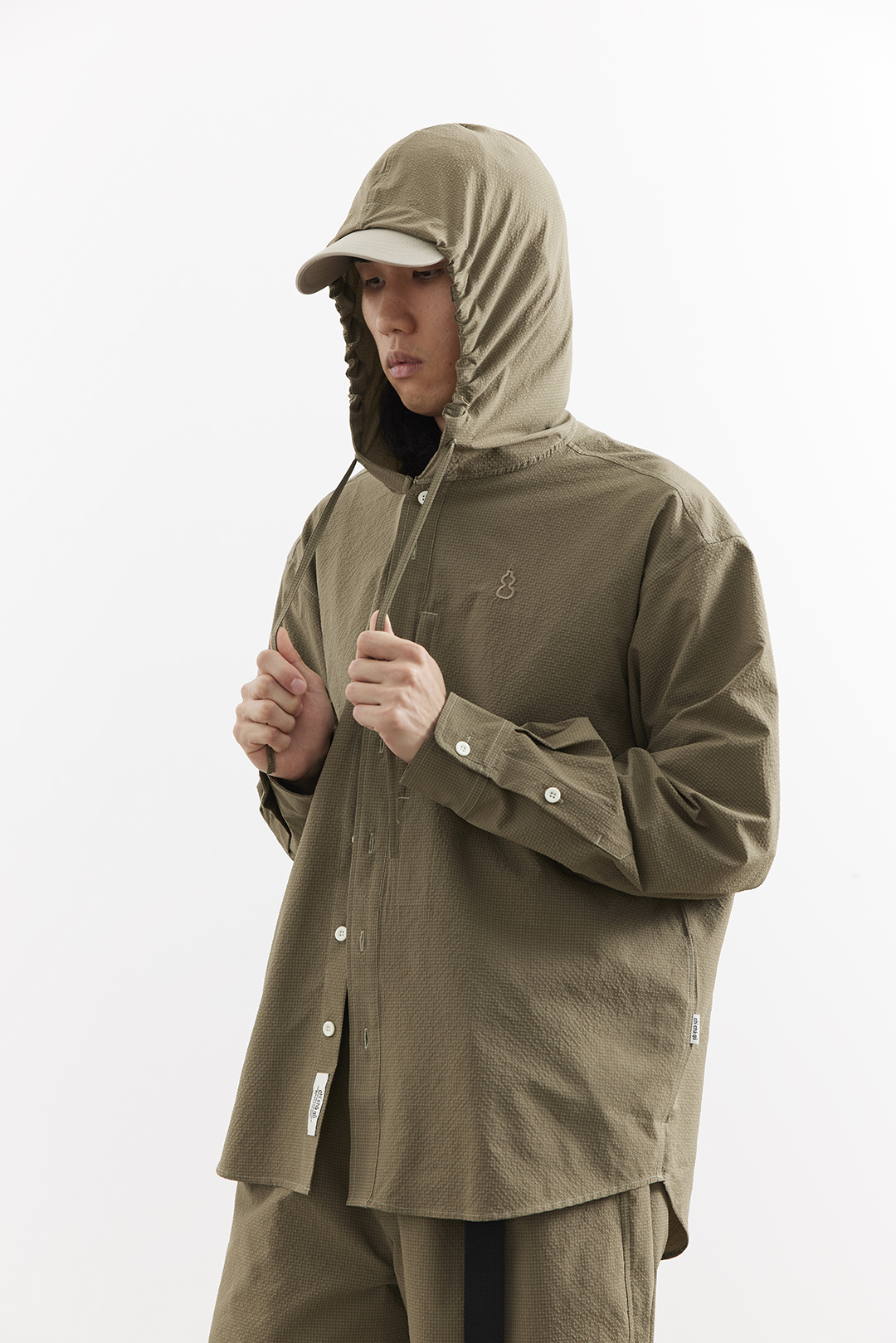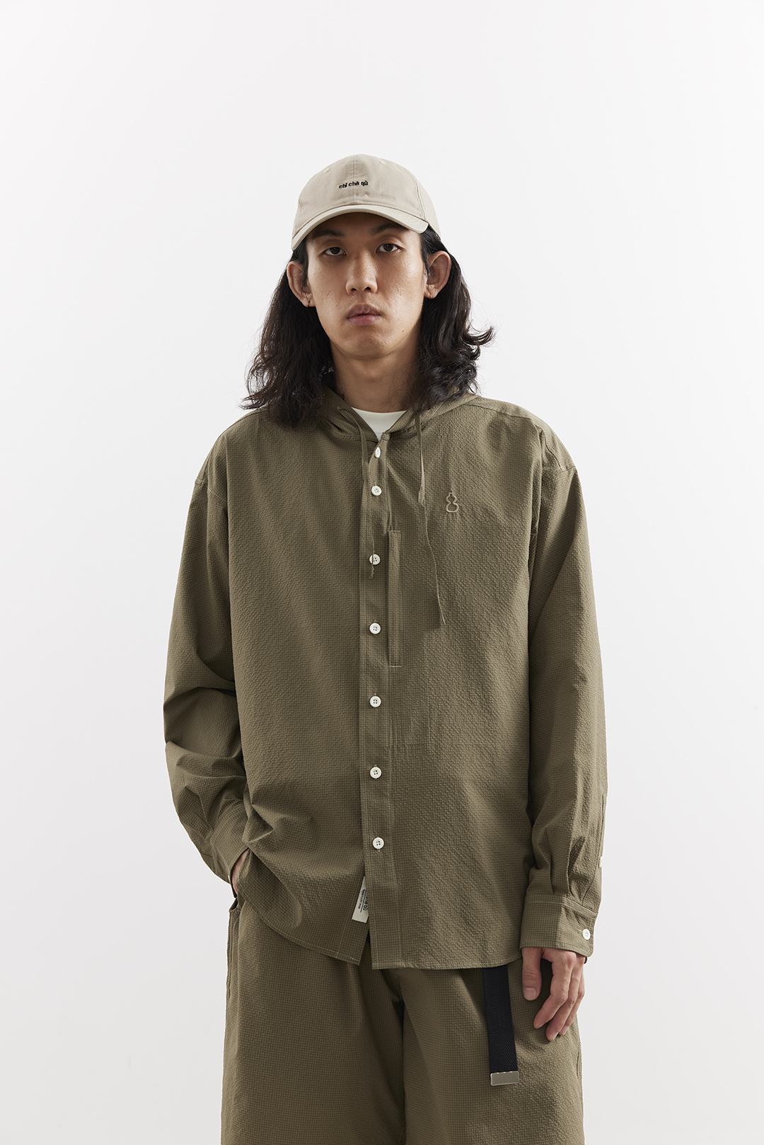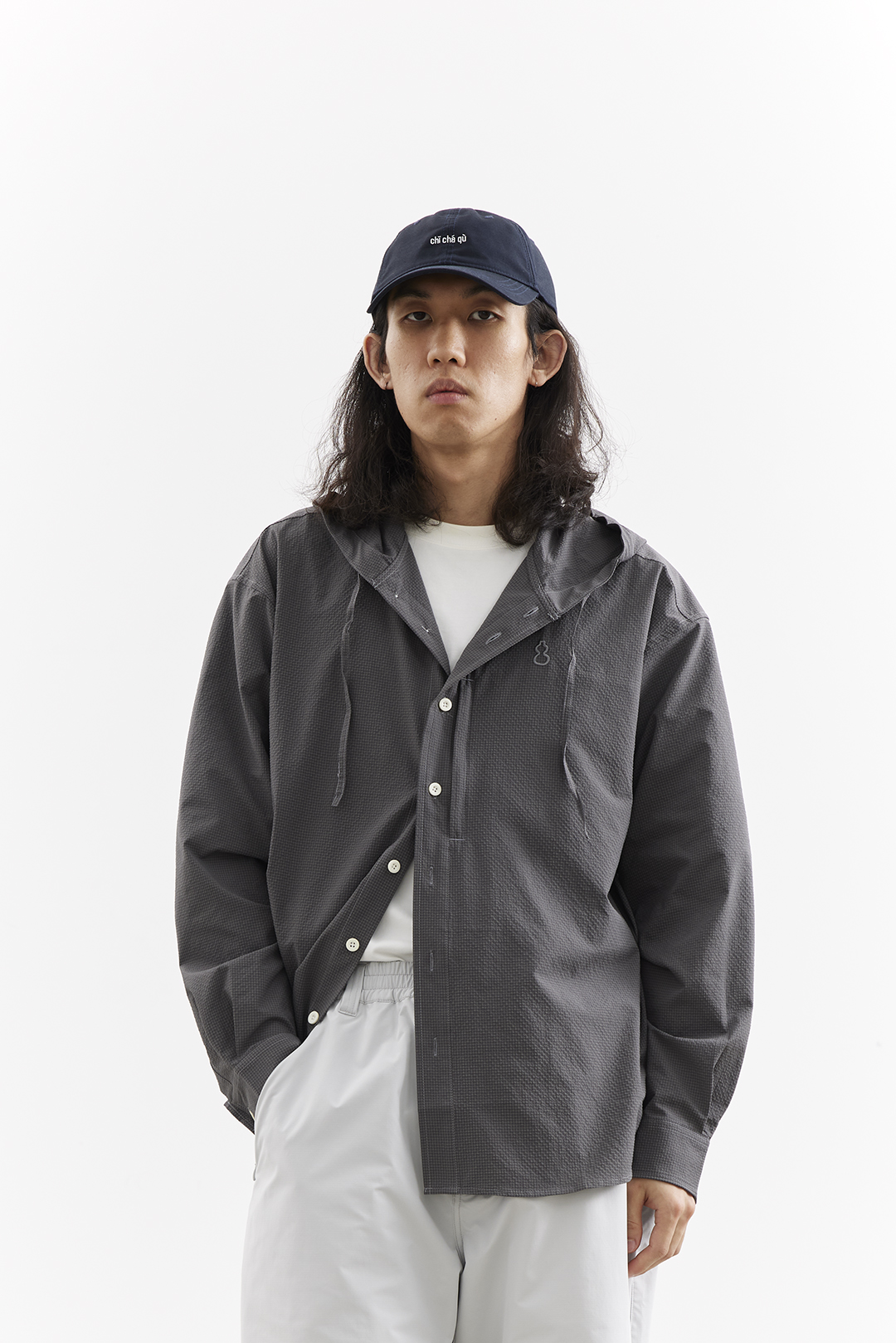 吃茶去chichaqu25速干泡泡纱格纹带帽长袖衬衫复古经典休闲山系