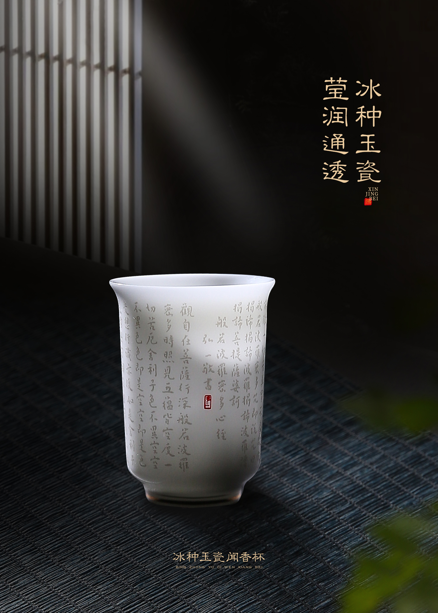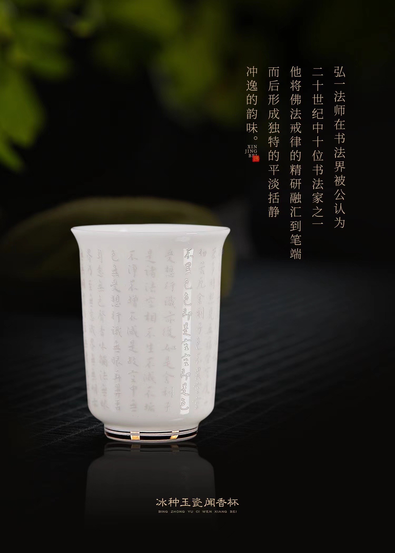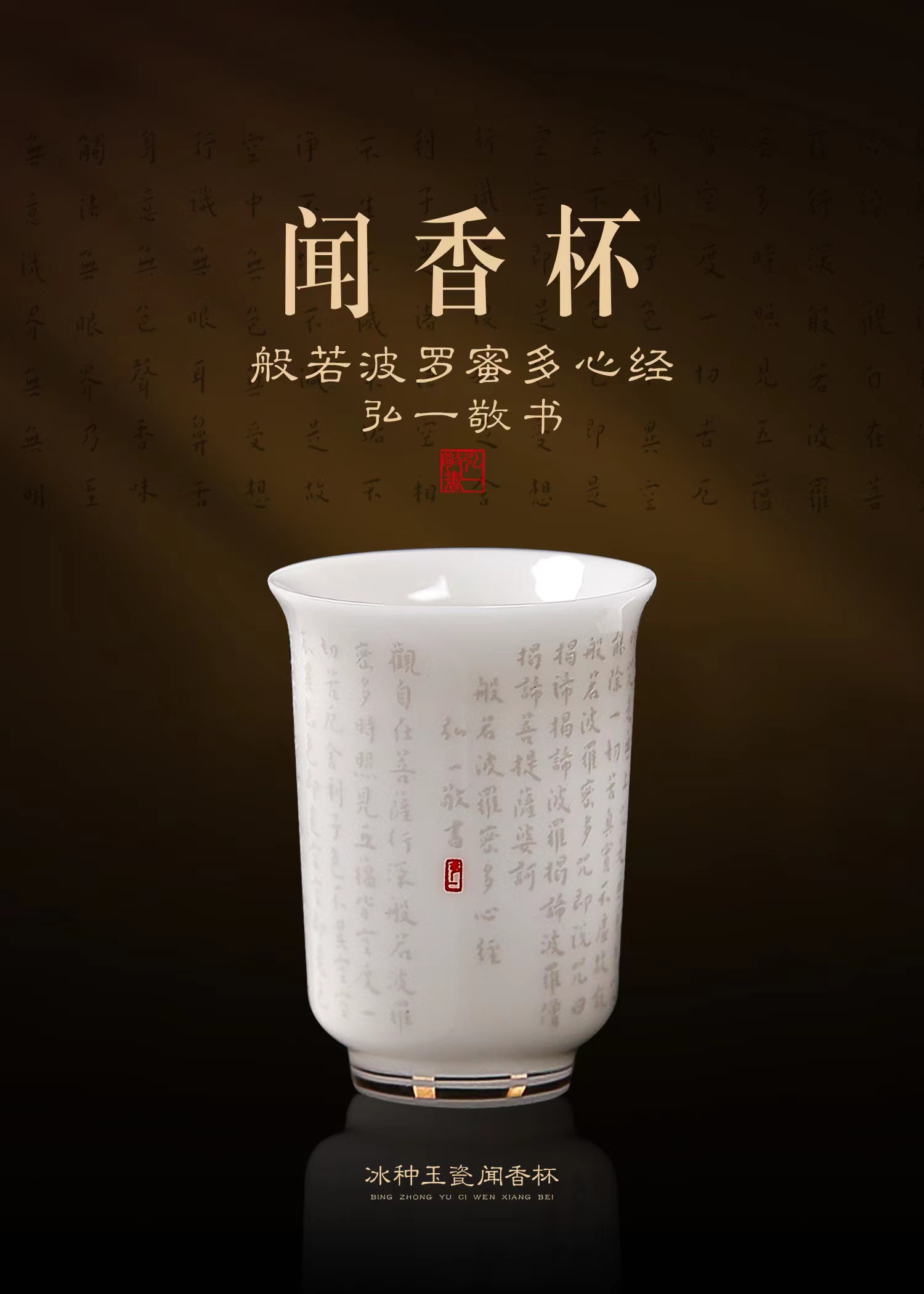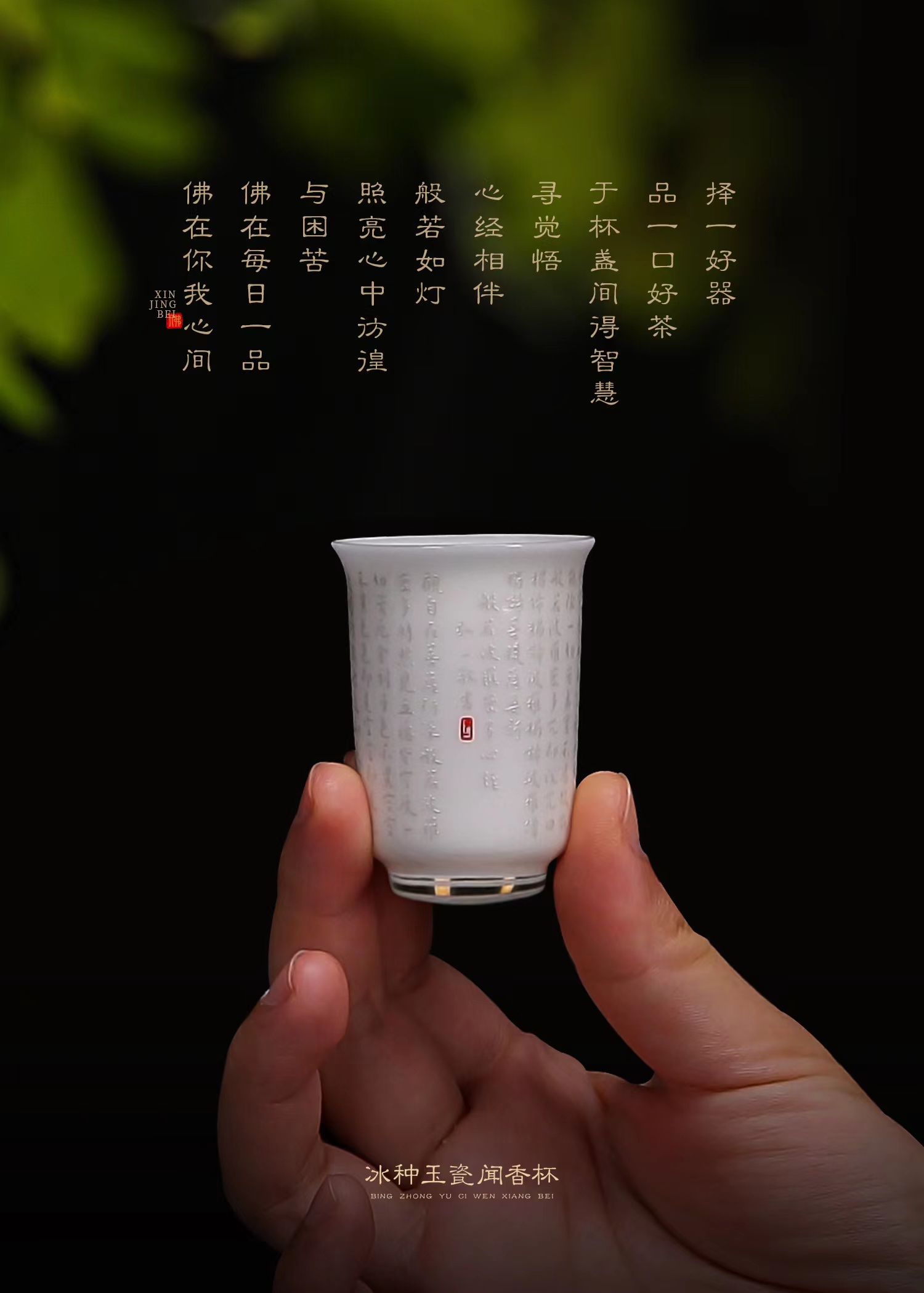 【般若波罗蜜多心经,道尽禅机揽福气】弘一敬书闻香杯,冰种玉瓷 迎光透亮,徐建勇老师签章,珍藏品鉴 送礼臻品