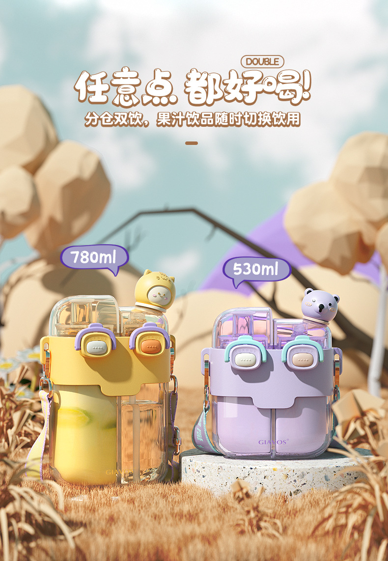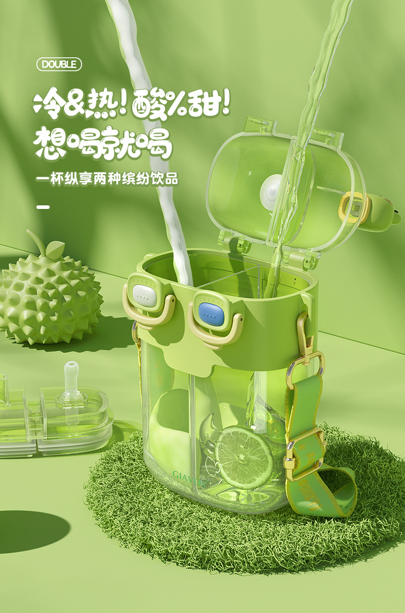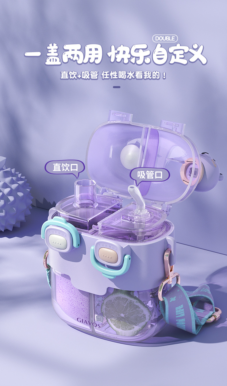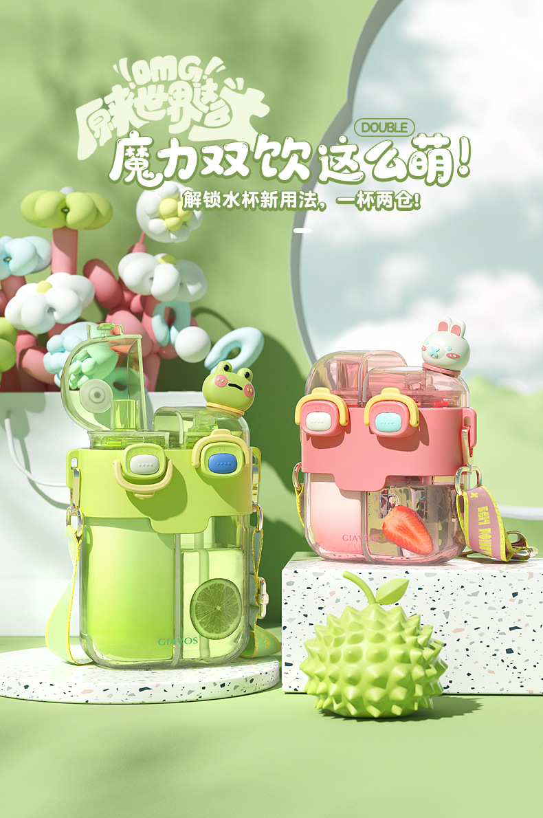 【日用百货】GIAVOS大容量便携塑料杯高颜值分仓杯儿童水杯学生带吸管杯子