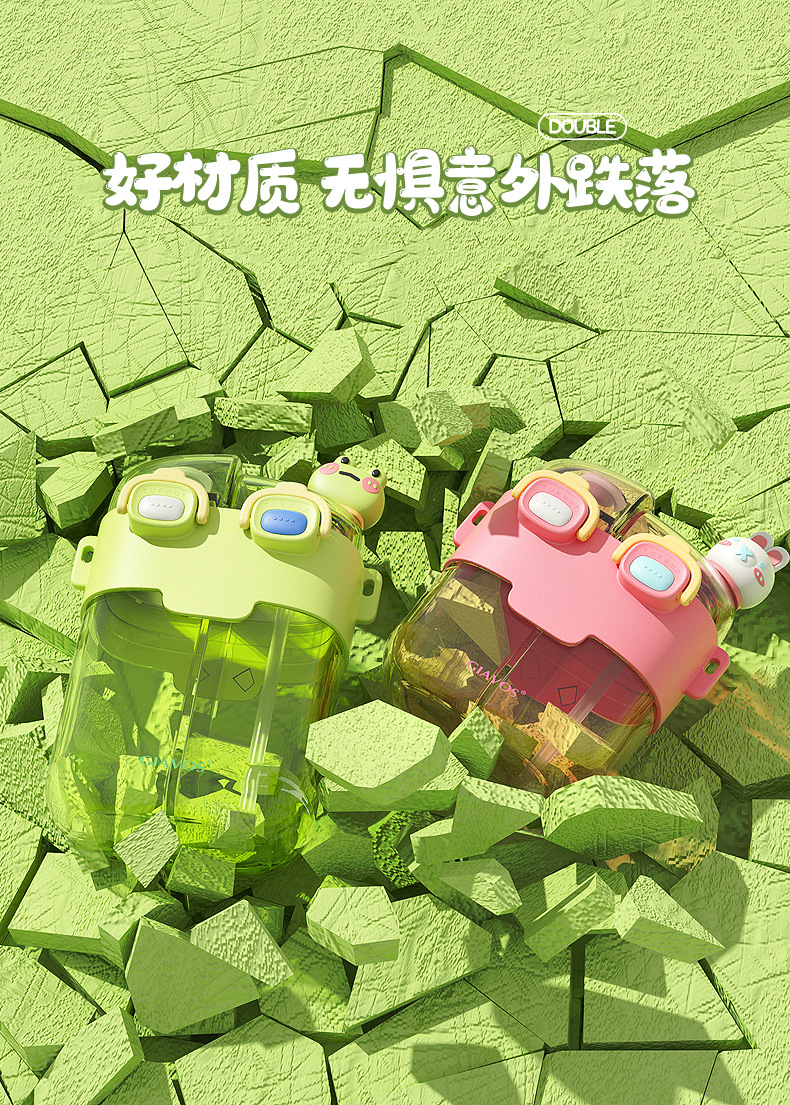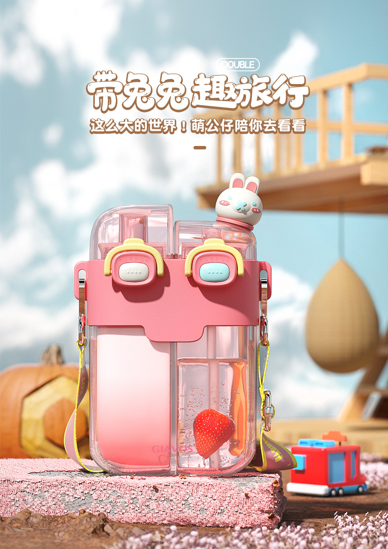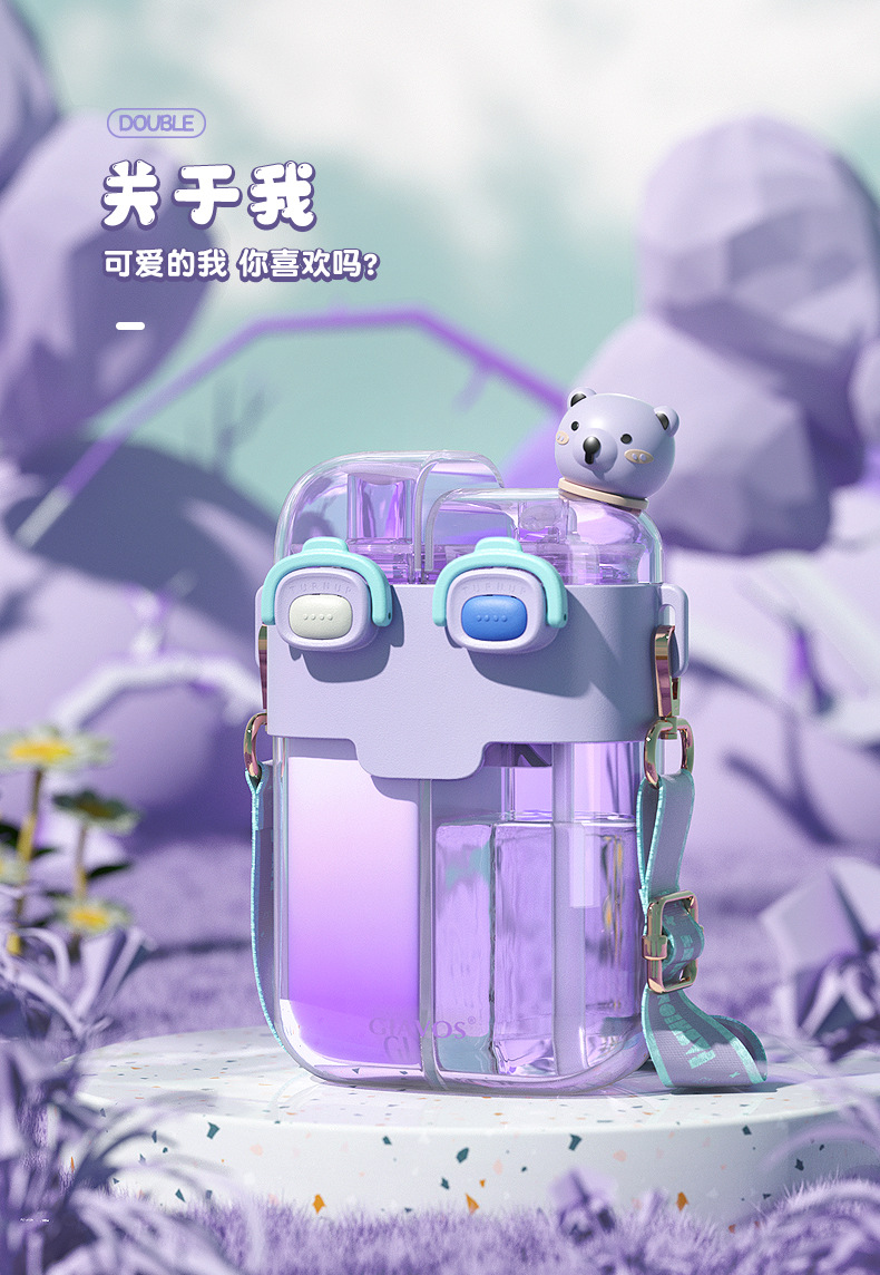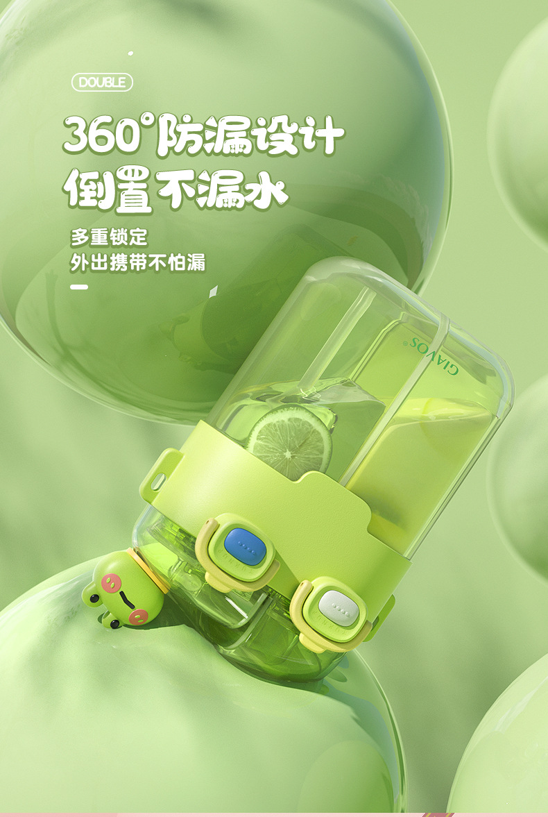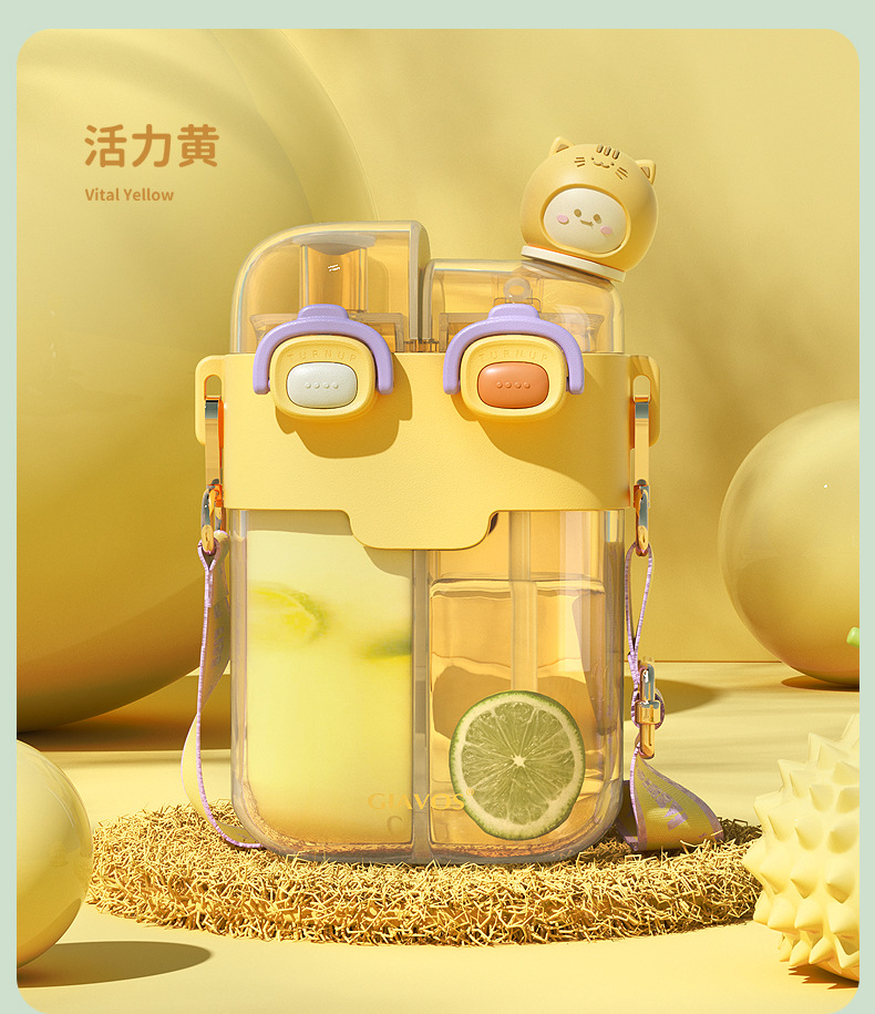 【日用百货】GIAVOS大容量便携塑料杯高颜值分仓杯儿童水杯学生带吸管杯子