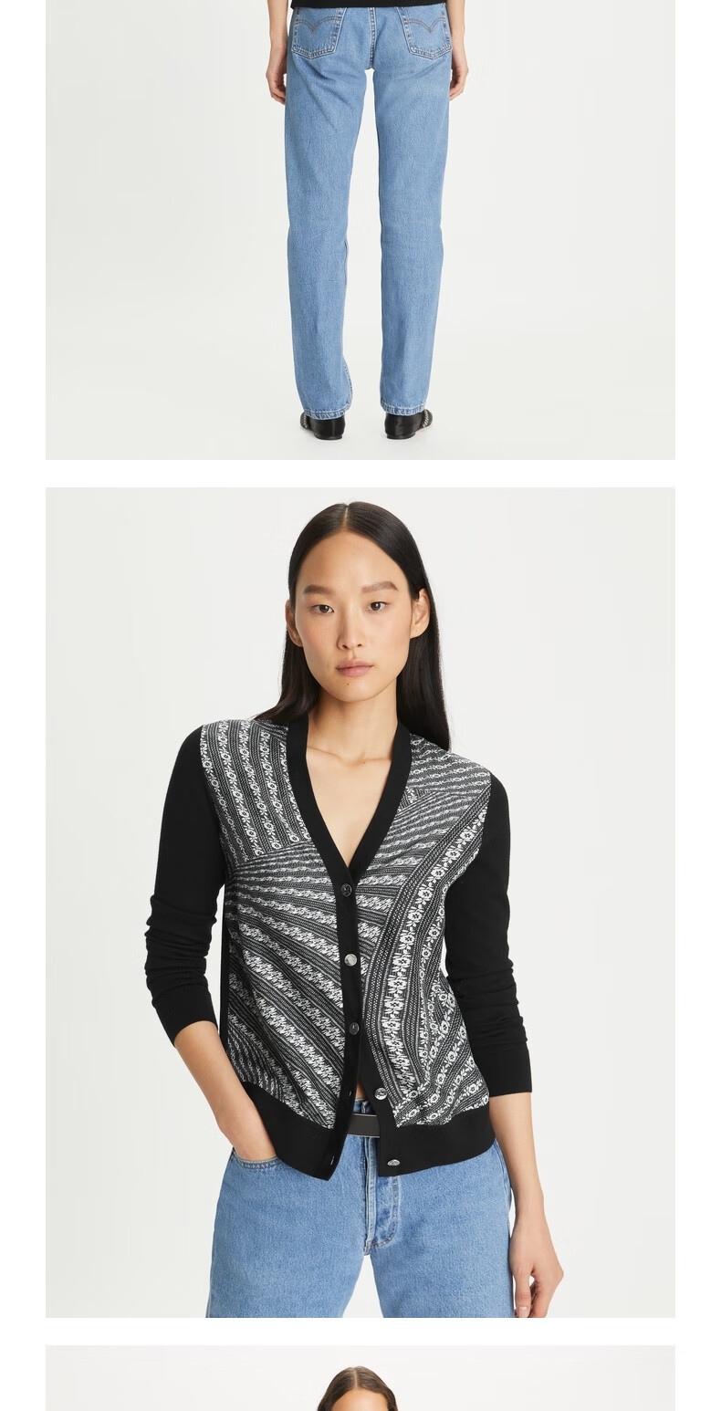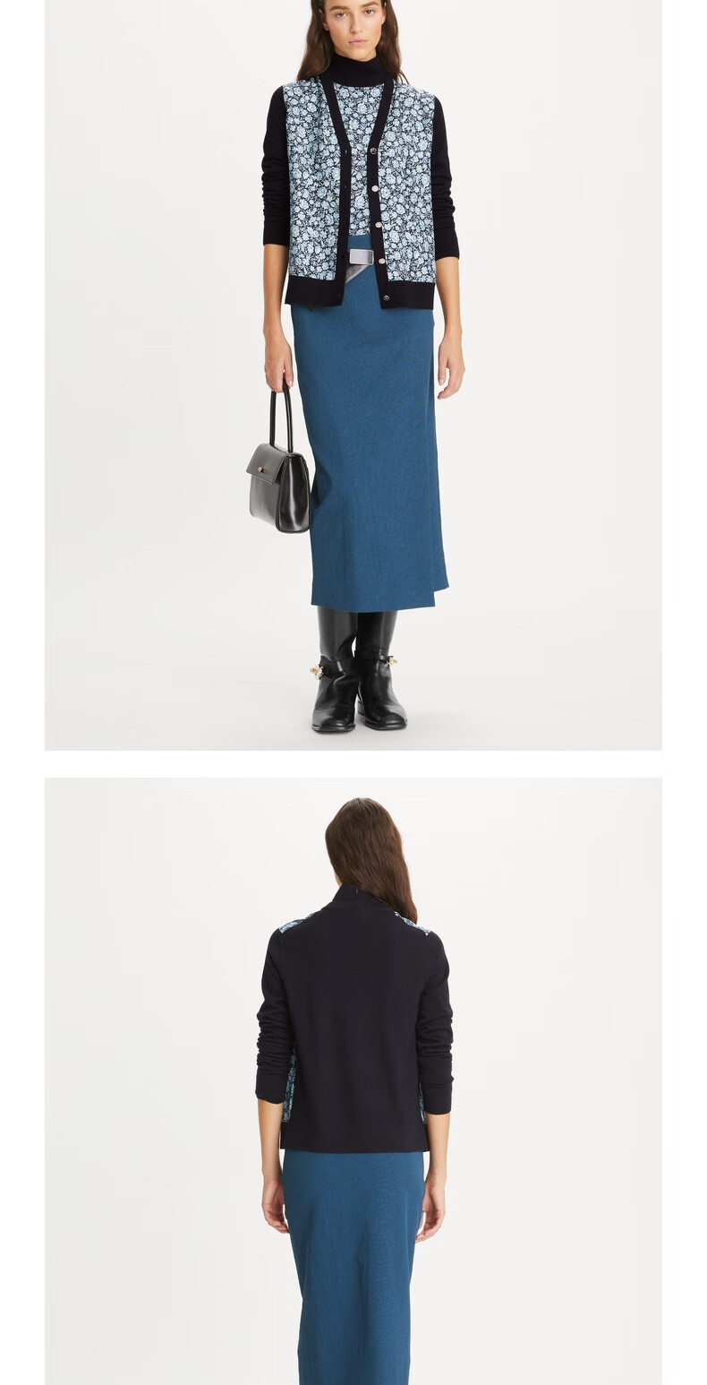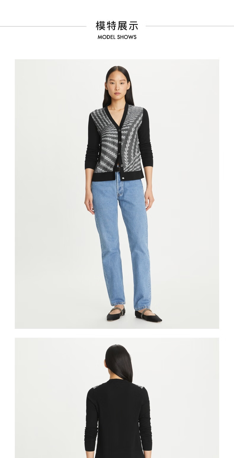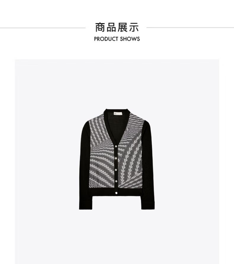 【1F】Tory Burch 汤丽柏琦 撞色针织开衫TB 154441 黑色 968 XS 推荐 80-90 斤