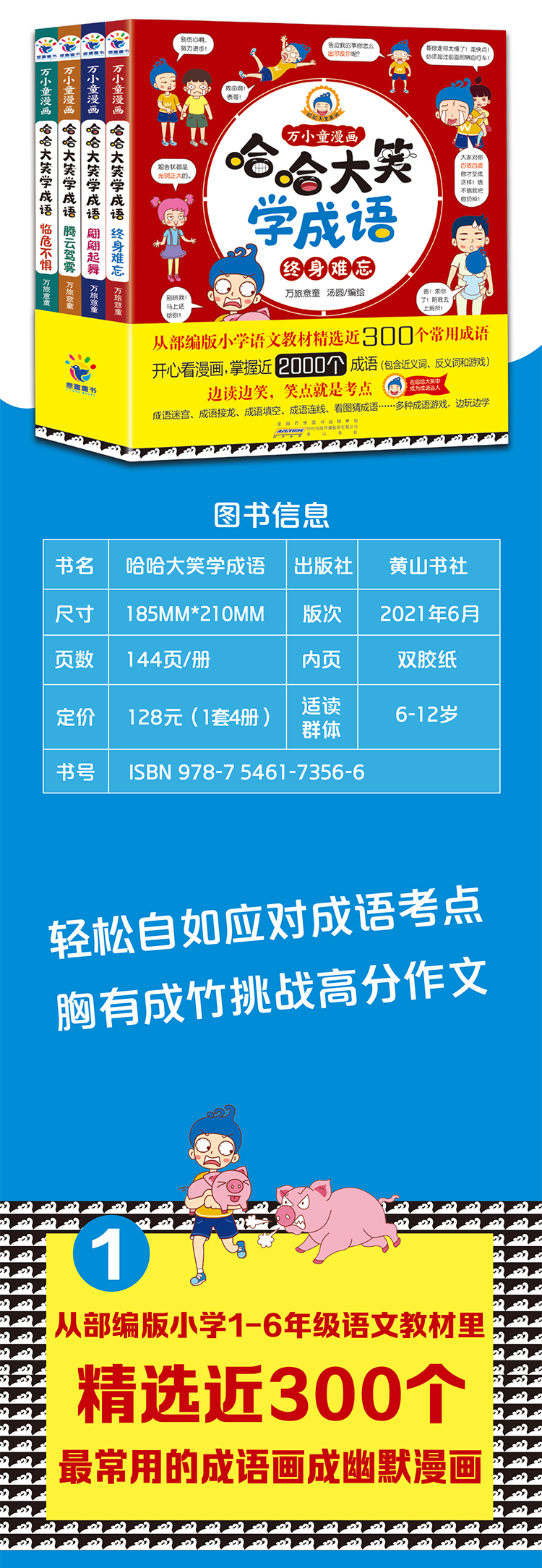 【适合6-12岁】哈哈大笑学成语(全4册)300个常用成语+2000个成语