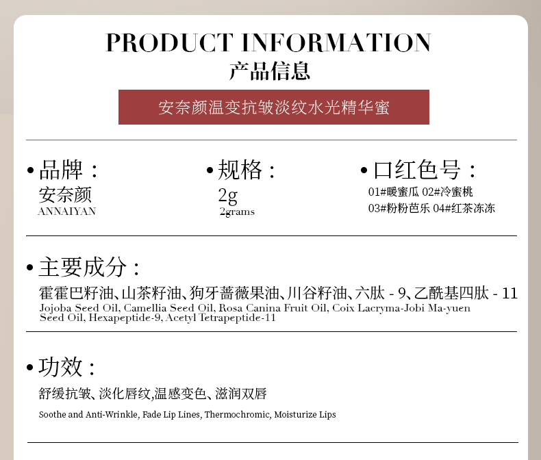 官网直发!【安奈颜AnNaiyan温变淡纹精华蜜】官网售价268 精华保湿 淡褪唇纹 温感变色 自然显嫩 早晚唇部补水 远离空调唇