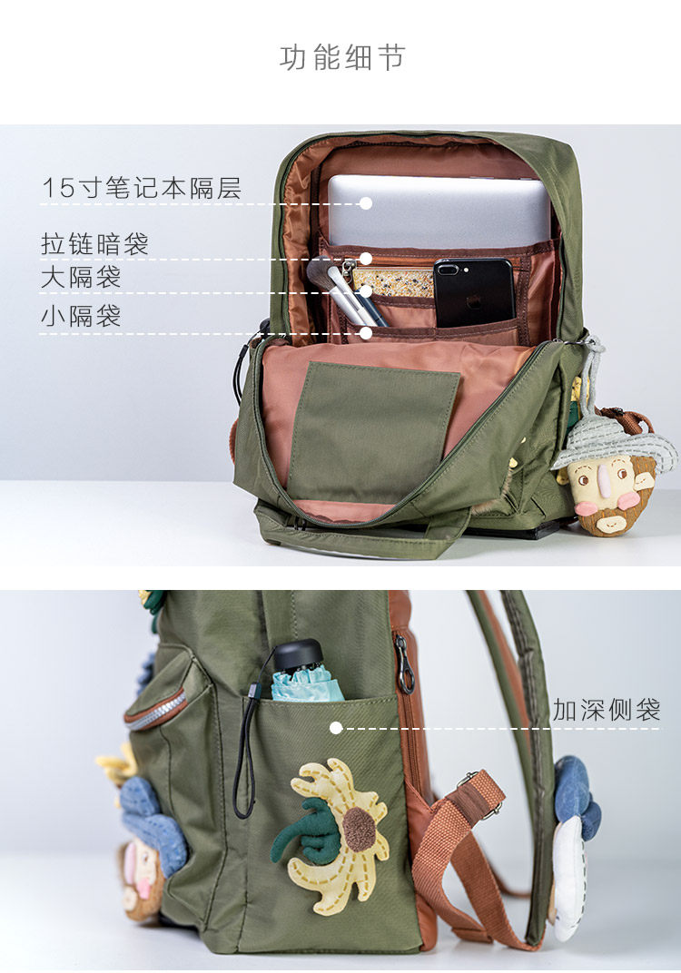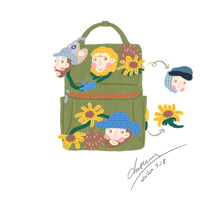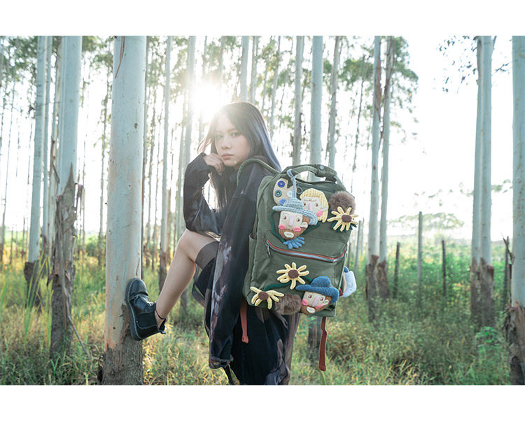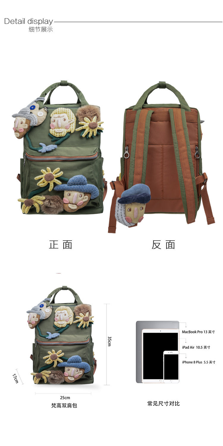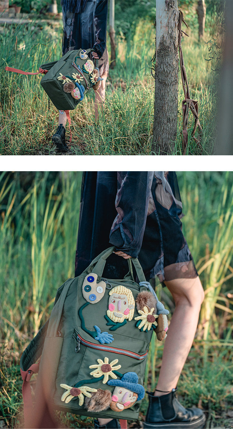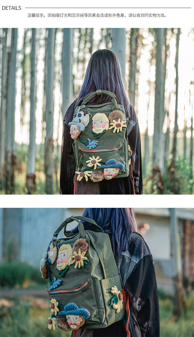 【1.21-2.6停发】芽小七艺术家系列之梵高手工书包女大学生可装电脑14寸双肩包女