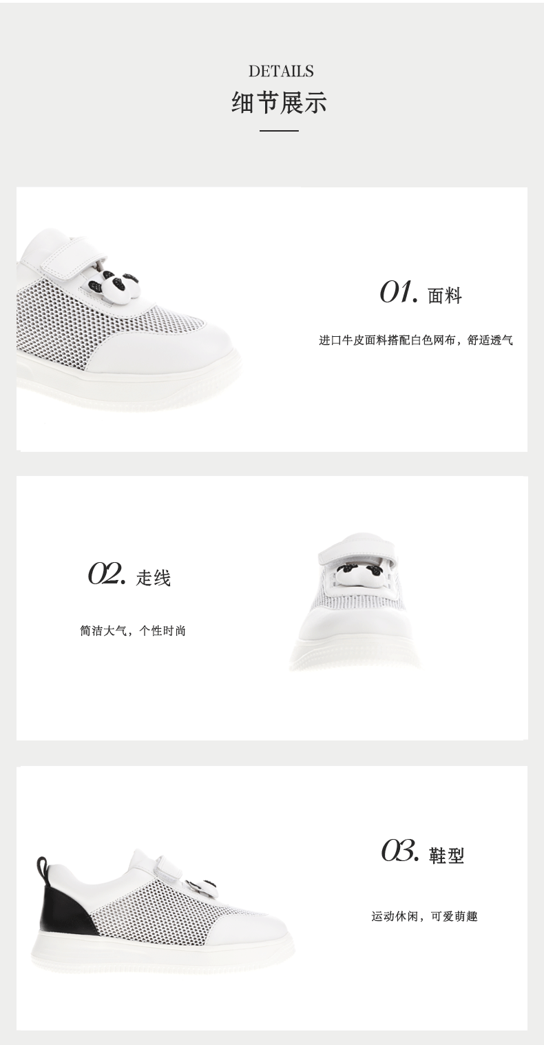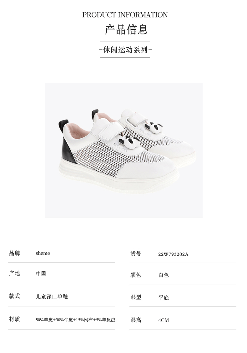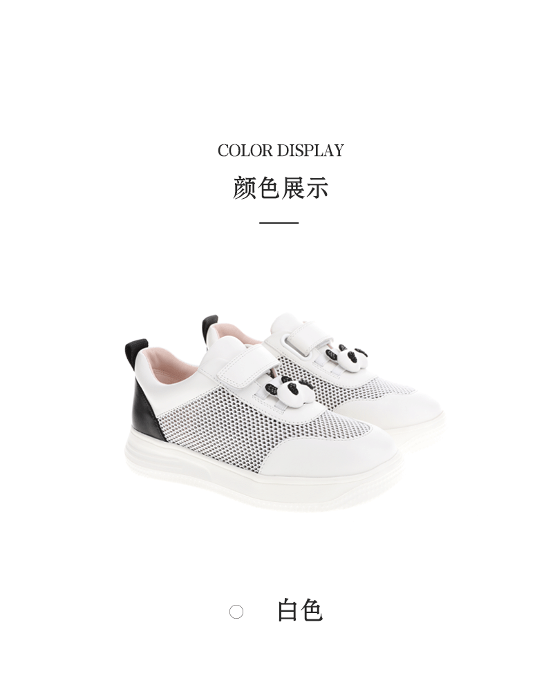 sheme熊猫系列水晶熊猫头魔术贴小白鞋休闲运动儿童鞋可定制