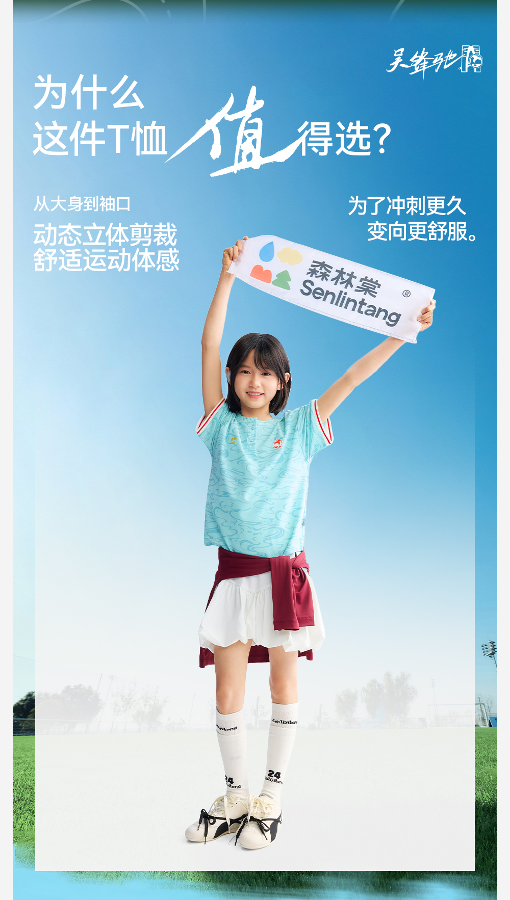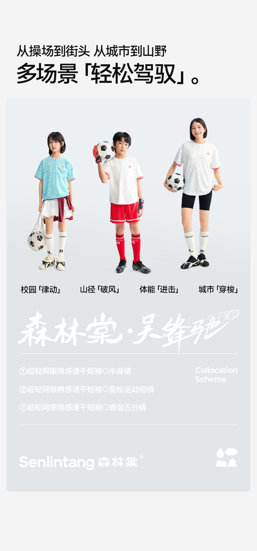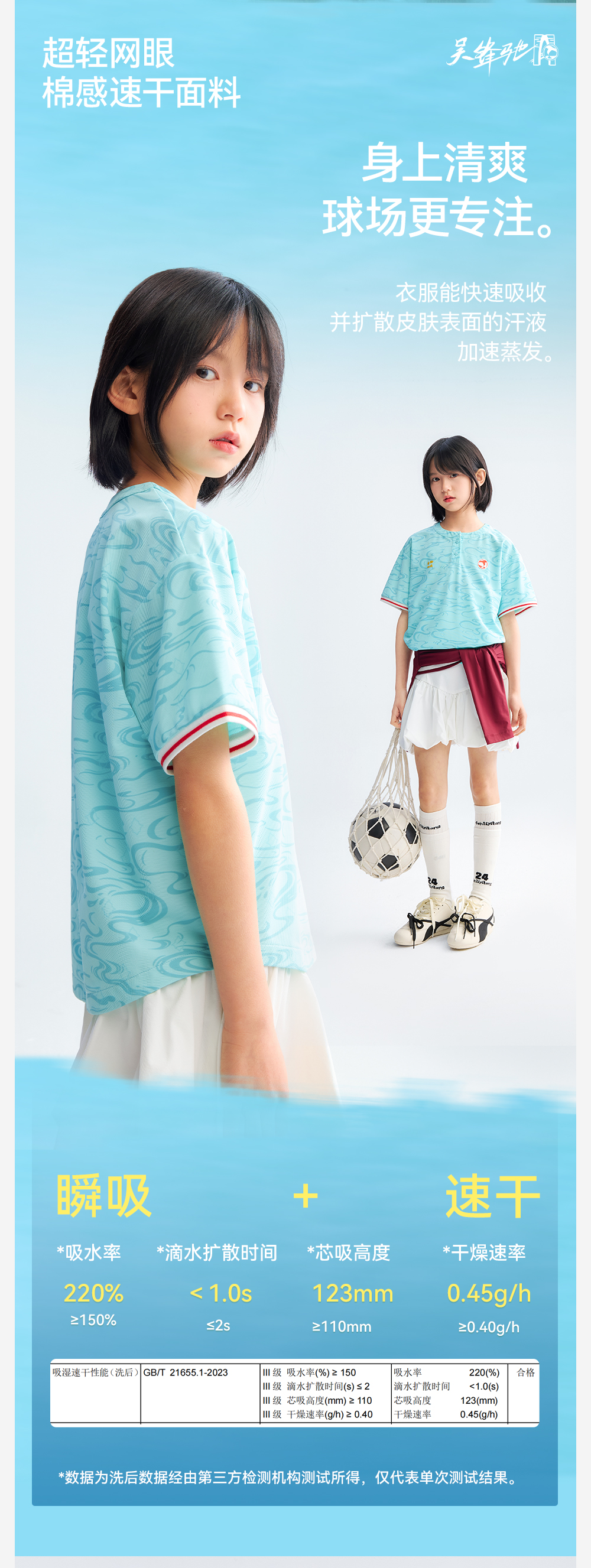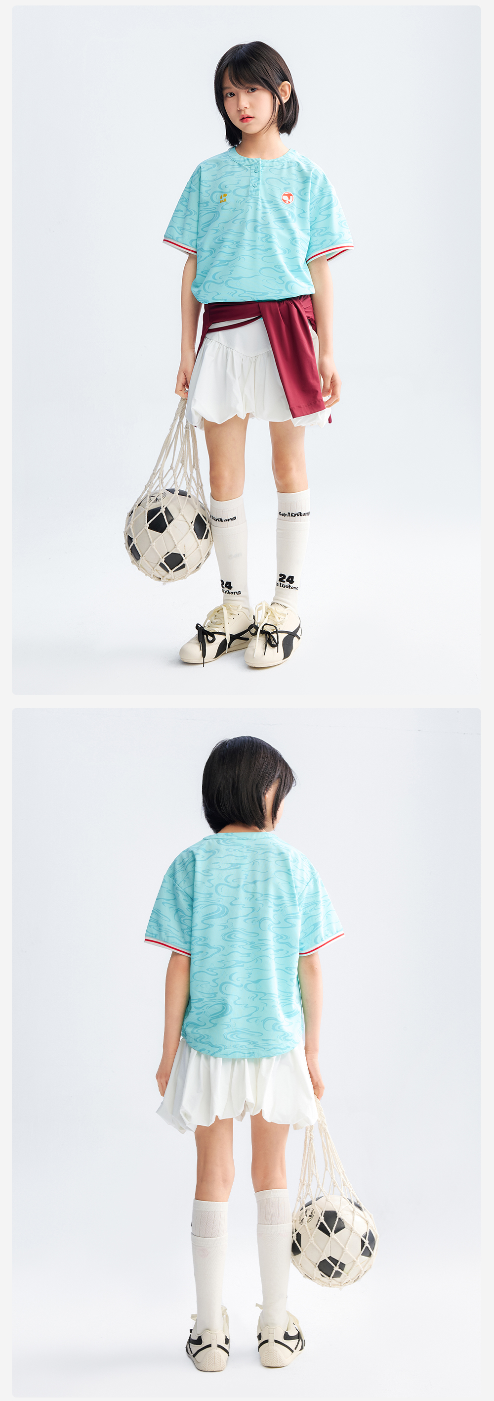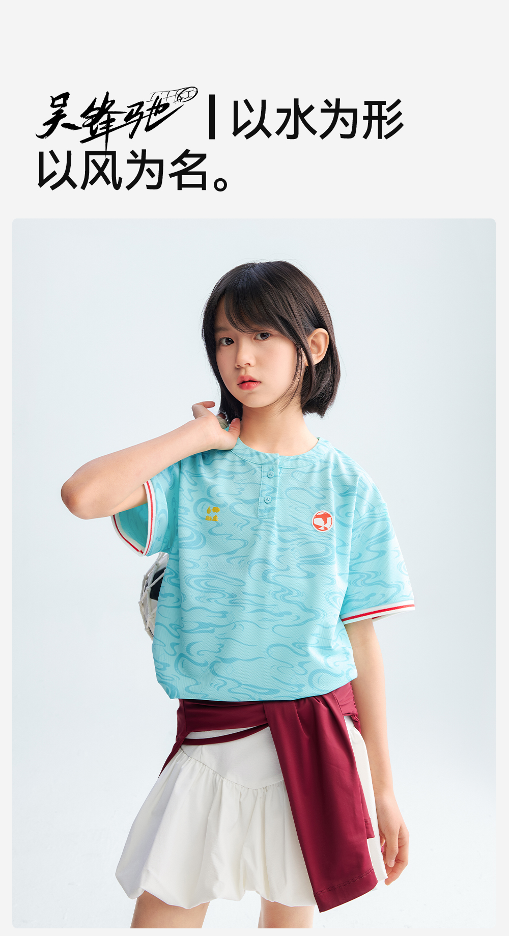 【超轻网眼棉感速干短袖】森林棠26夏款儿童云纹圆领可开扣宽松T恤40162466