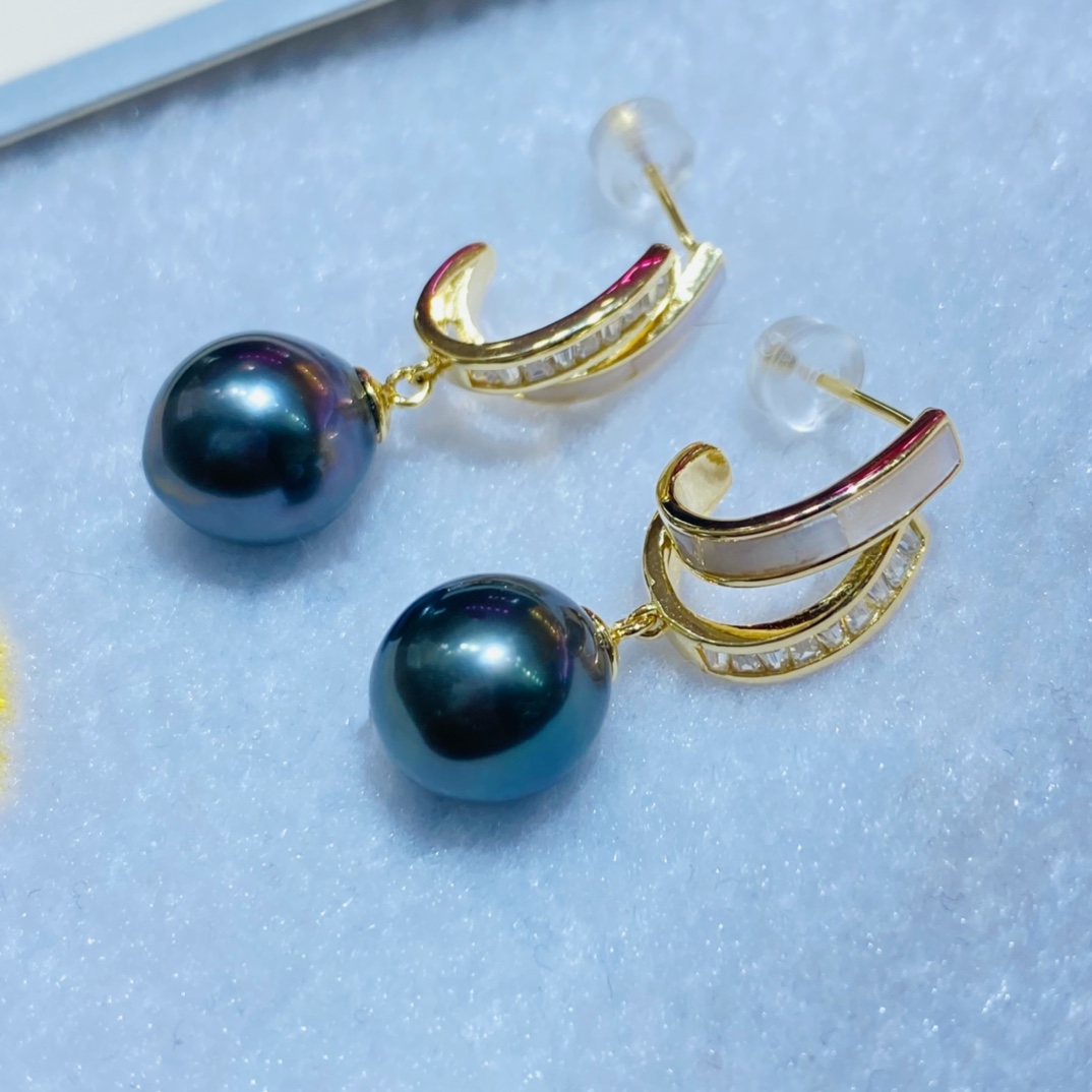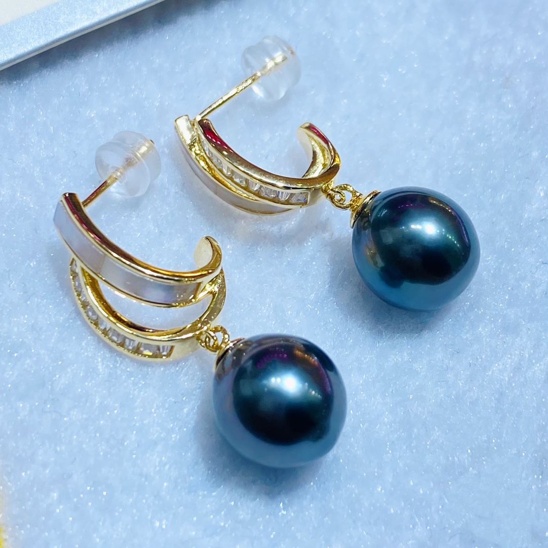 D402005 10-11mm天然色大溪地黑珍珠925纯银耳环 新款到货‼️大牌范儿~少有的水滴形状超级美😍强光,微瑕!表皮光滑细腻,珠光晕彩极美!这个品质的真的很难得 特价:700一对 不议退