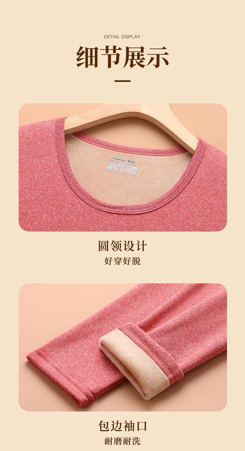 梦芭蒂双面磨毛内衣女秋冬圆领舒适加绒加厚高弹秋衣秋裤阳离子加绒套装