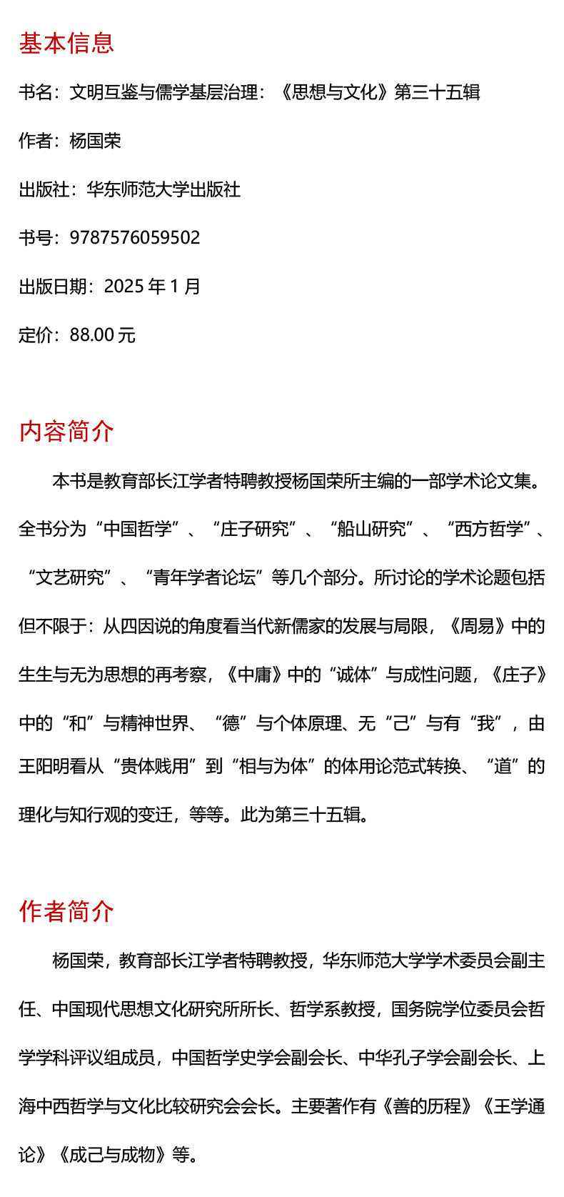 文明互鉴与儒学基层治理 《思想与文化》第三十五辑 CSSCIl来源期刊