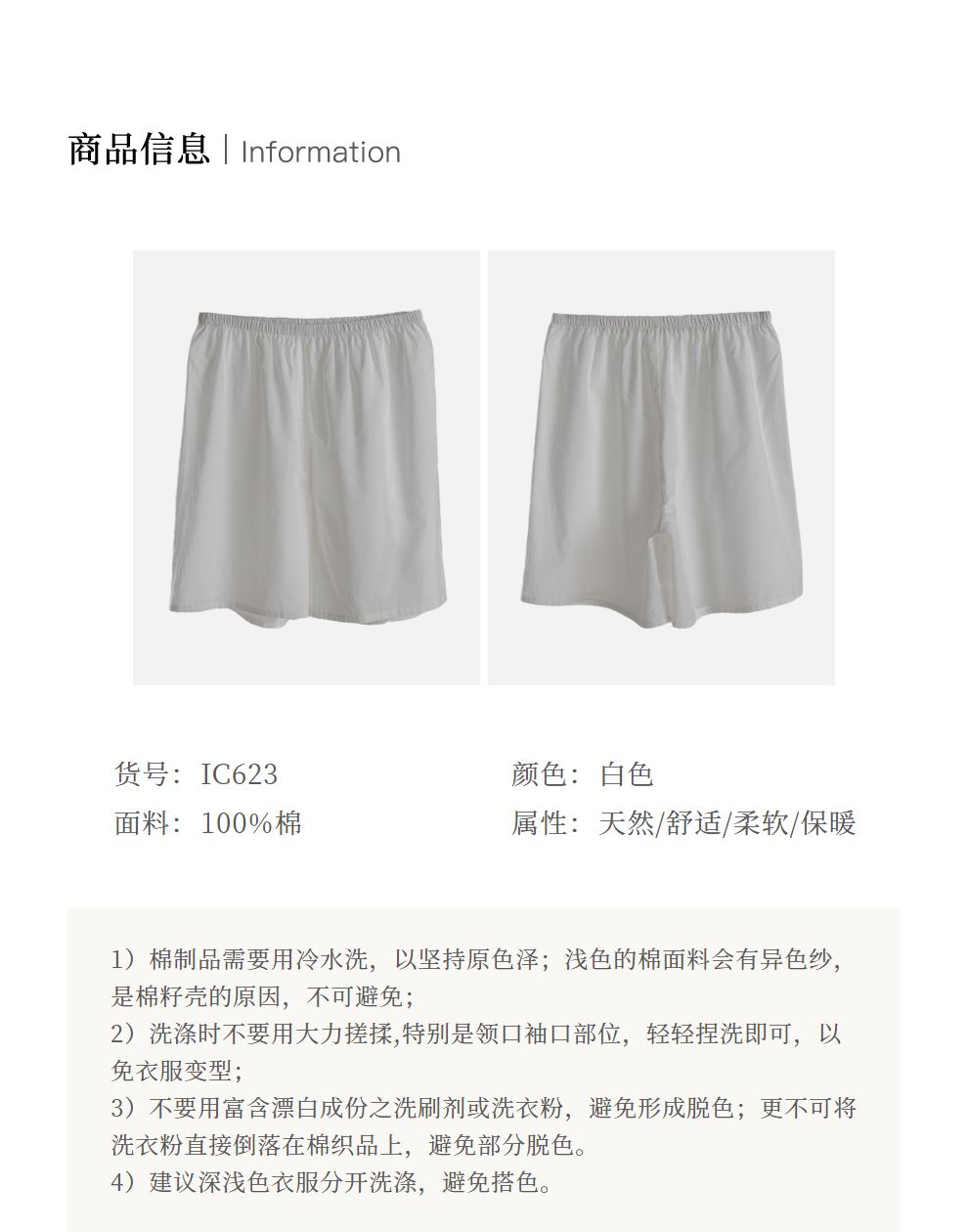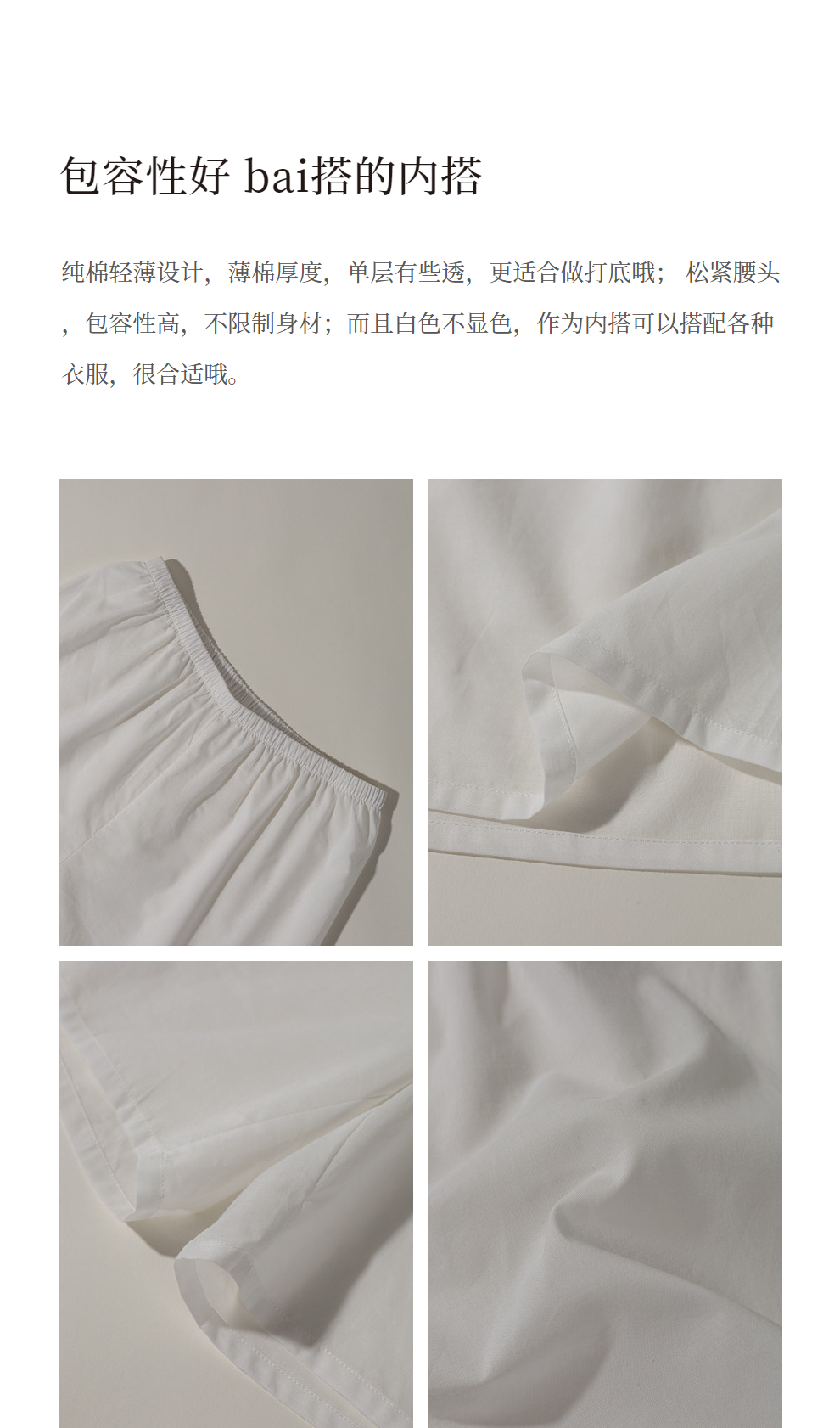 特绽放623【黑白灰系列·夏日白开水】有机棉安全裤wan能打底短裤