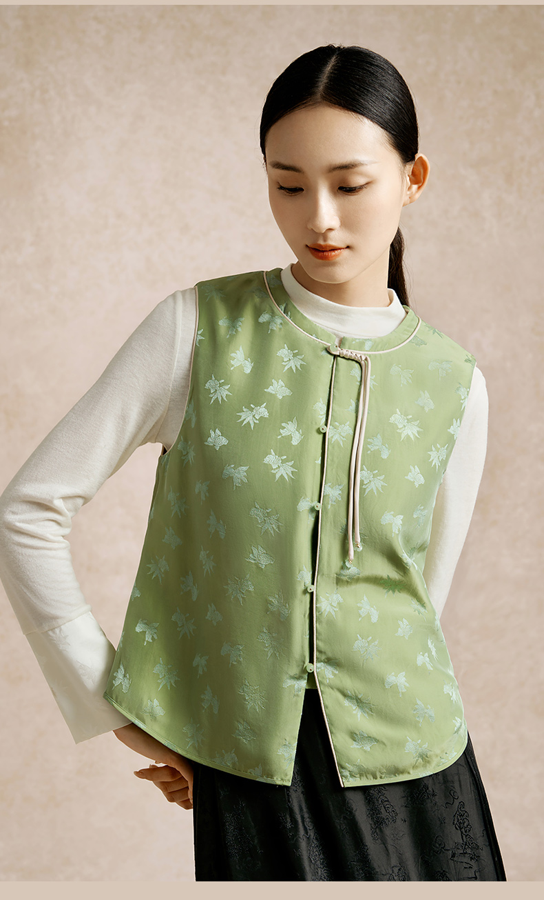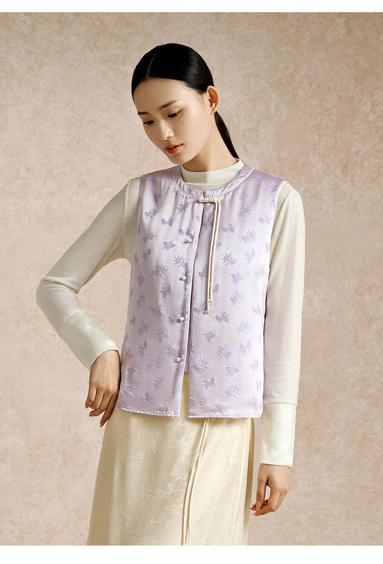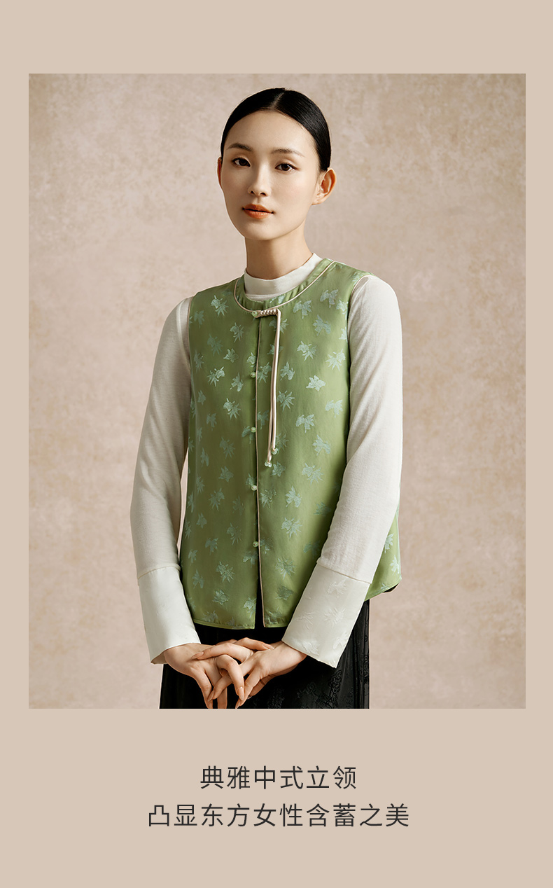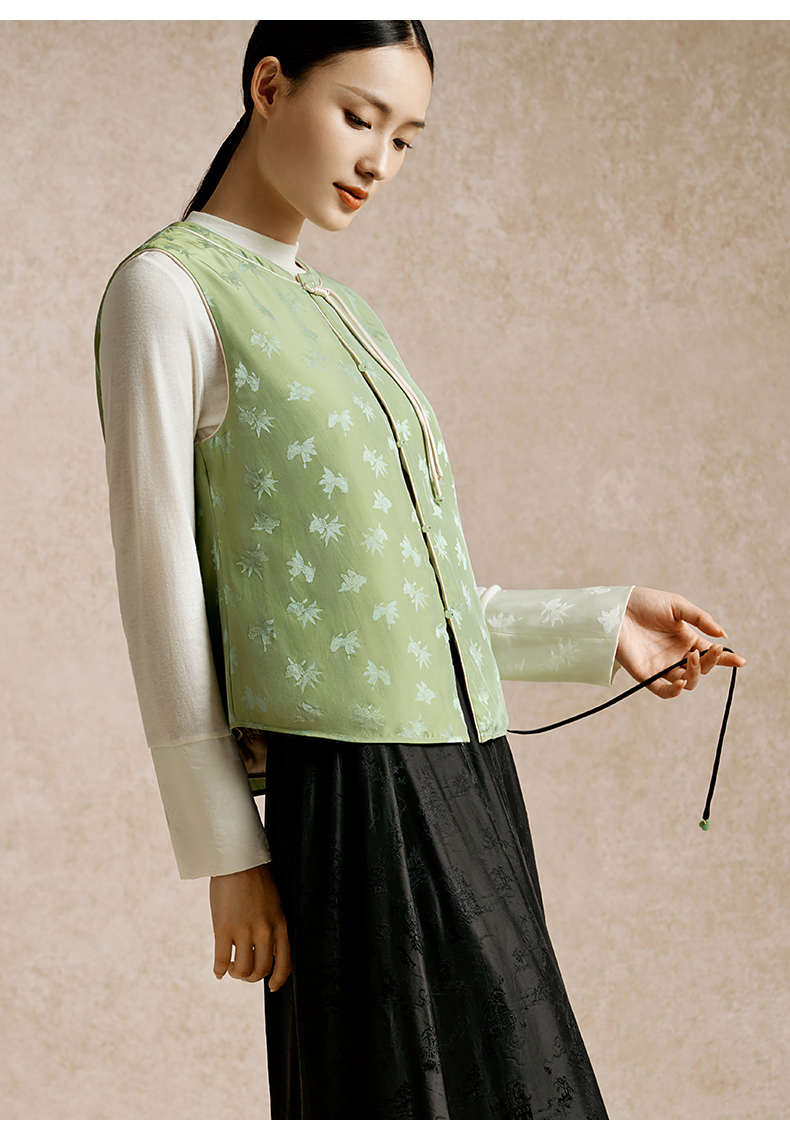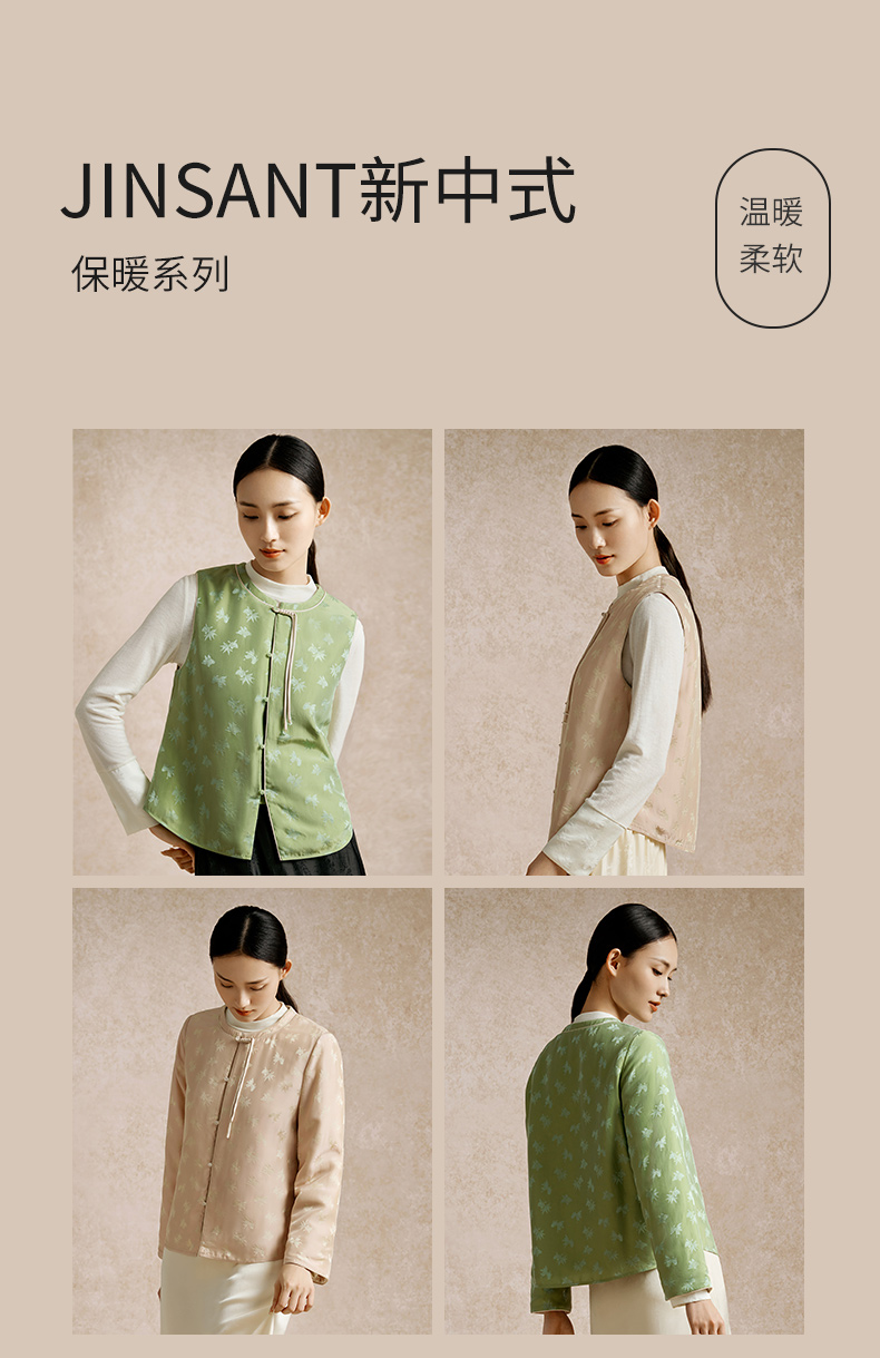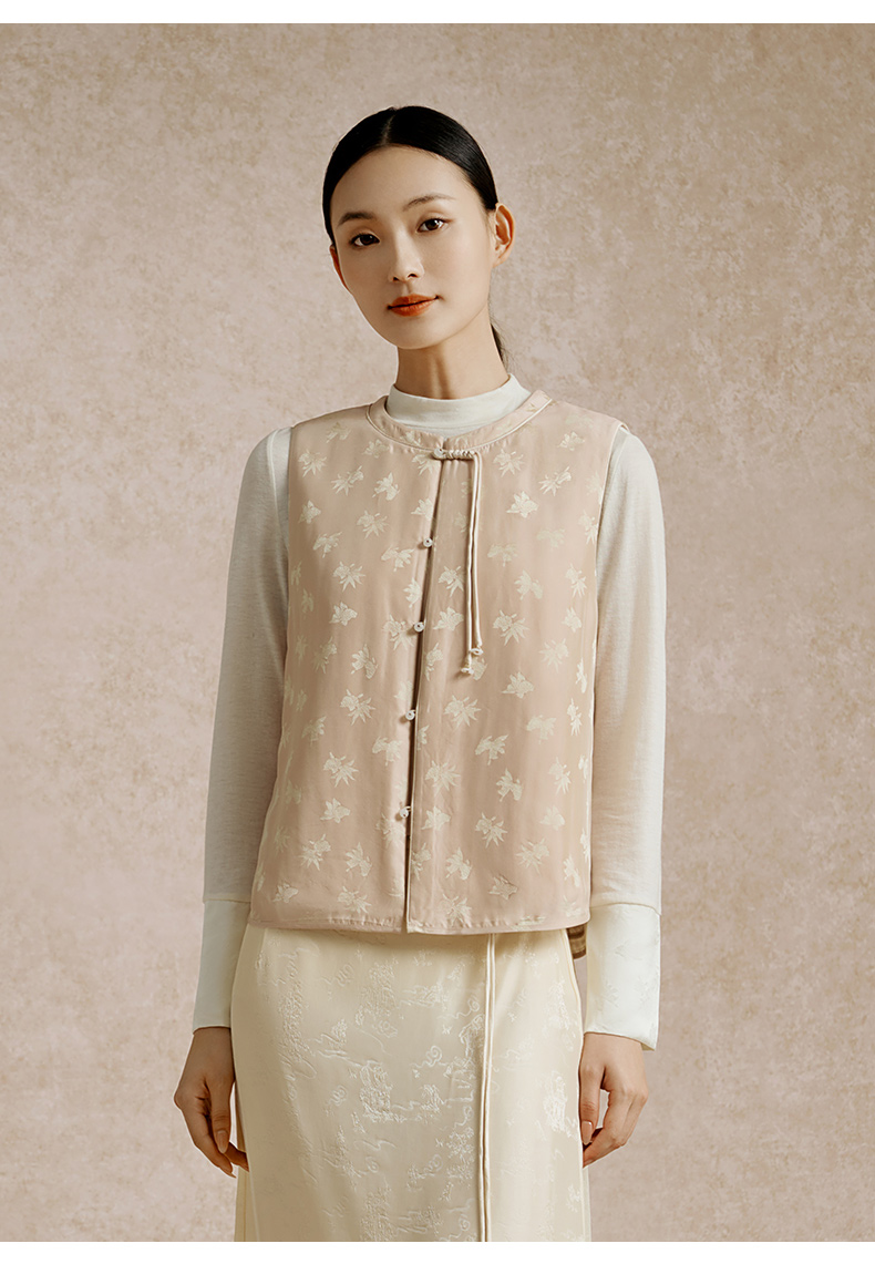 金三塔100%桑蚕丝填充新中式保暖背心女秋冬新品马甲棉袄保暖上装(限价) NSFEC732