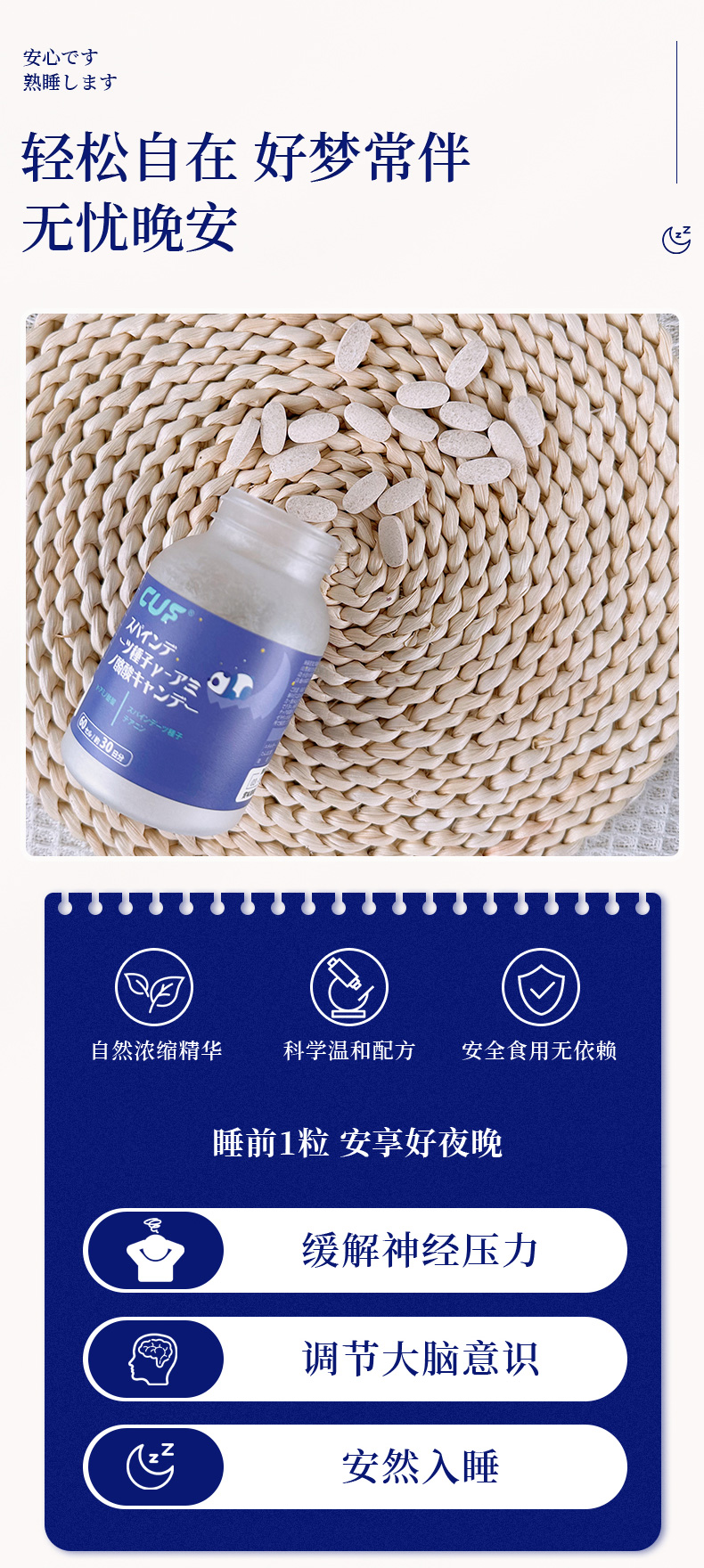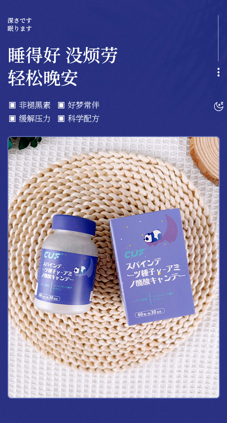【日本睡眠神器,8小时安睡到天亮】日本CUF晚安GABA睡眠压片糖果 舒缓情绪 缓解焦虑 安心睡眠