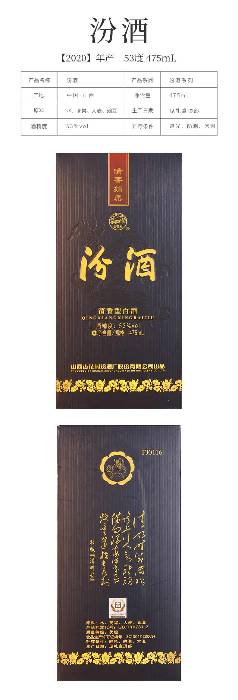 53°蓝汾汾酒(2020年) 475ml*1 山西杏花村汾酒