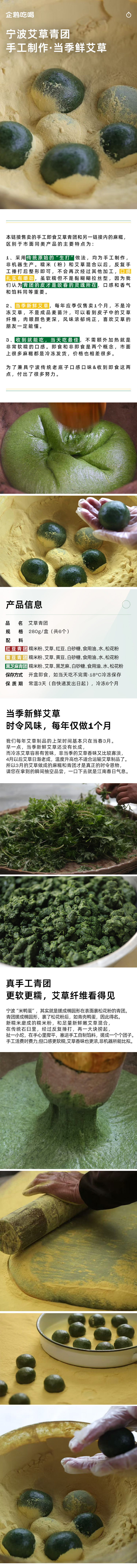 【仅限江浙沪皖拍】企鹅市集|宁波艾草青团 采用当季鲜艾草手工制作 红豆/黄豆/黑芝麻馅料