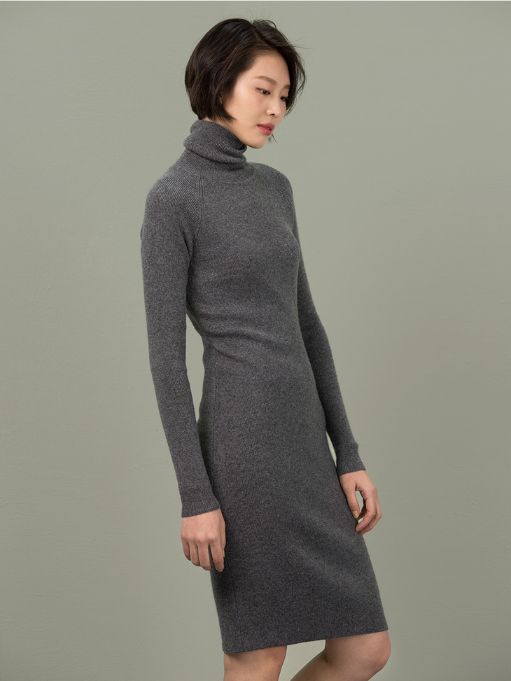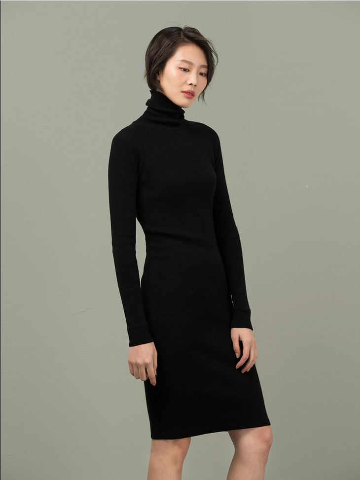 那就是这款高领罗纹连衣裙