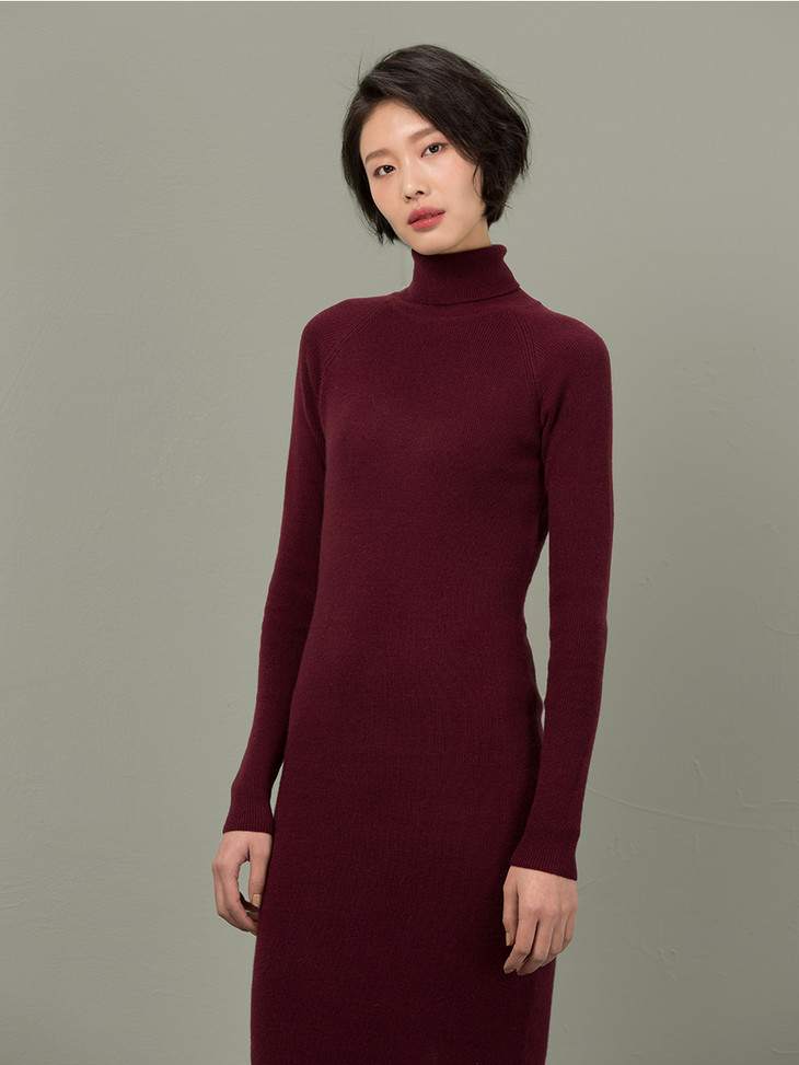 米拉诺-高领修身螺纹连衣裙