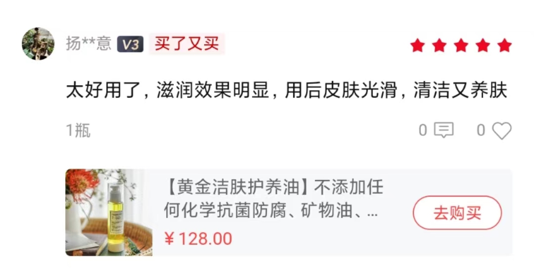 用了这款“黄金油”,肌肤完全是滋润的状态,不需要再涂抹任何身体乳。