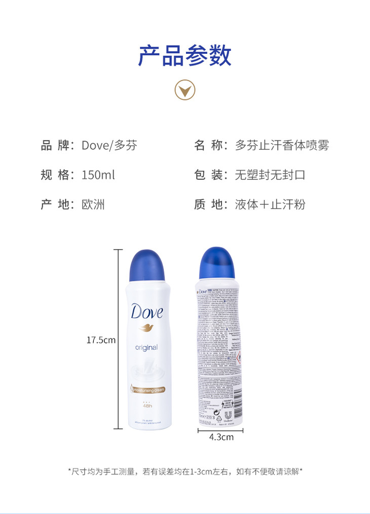 【男女适用】意大利 Dove多芬 清新止汗香体喷雾系列 150ml