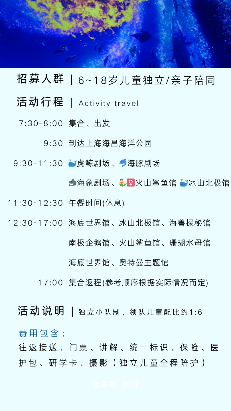 孩子志 | 海洋总动员 上海海昌海洋研学营 独立/亲子 8/16、8/20【VIP优惠】趣海洋看世界鲸奇…