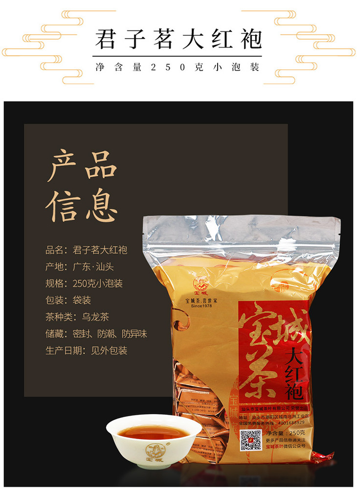 【足火香型 地道口感】宝城 君子茗大红袍茶叶250克袋装小泡12.5克共20泡 醇厚甘爽A144