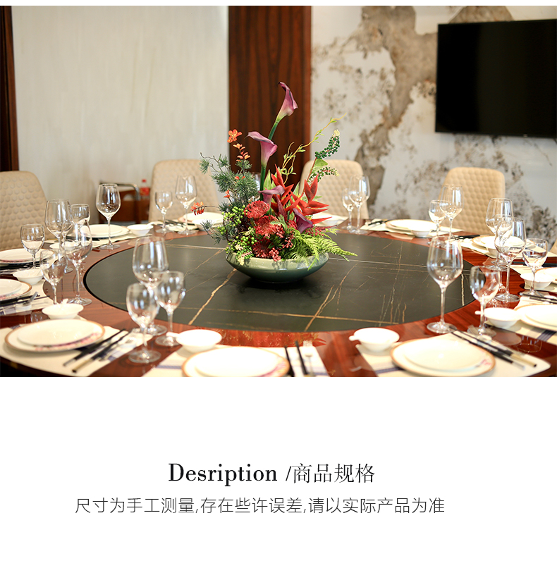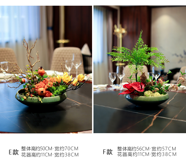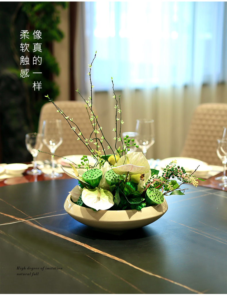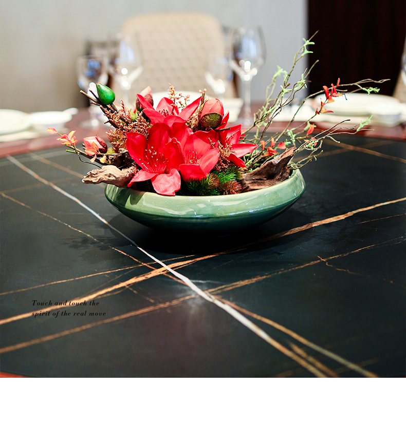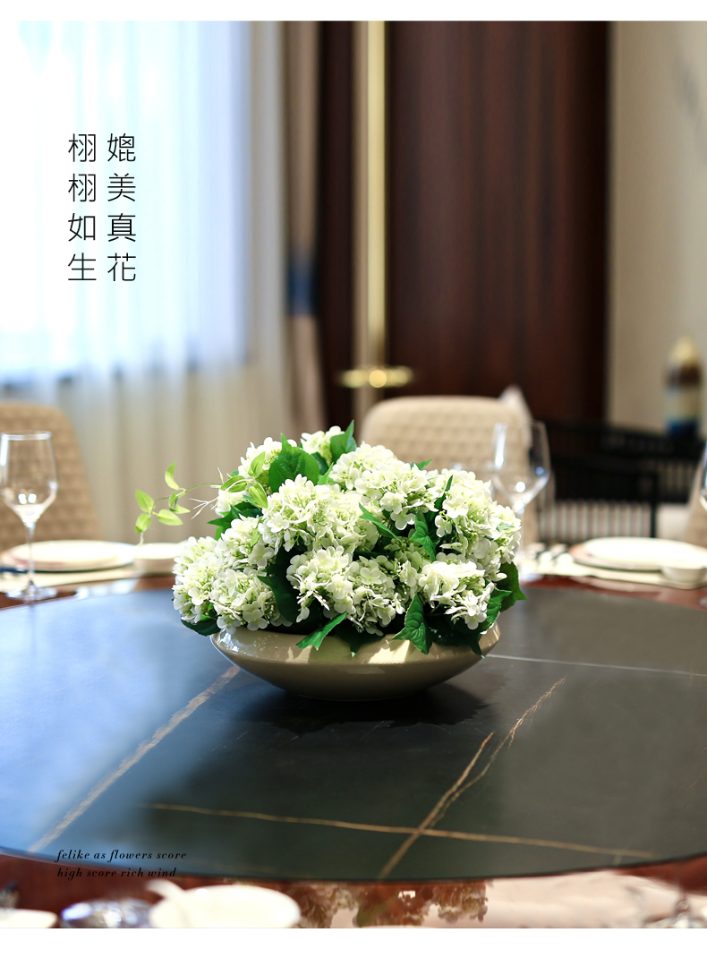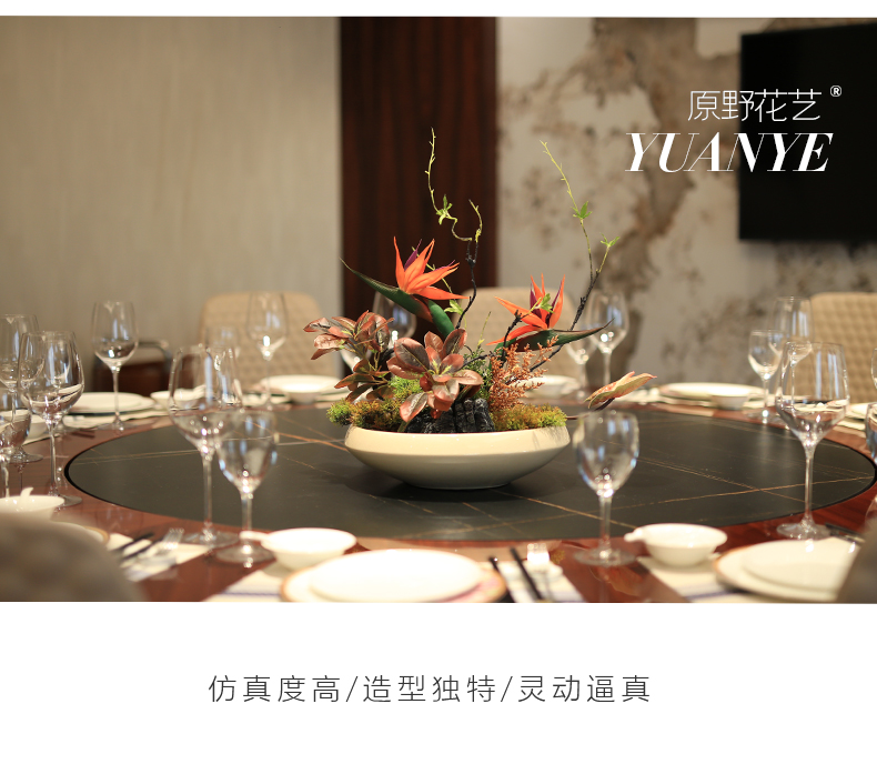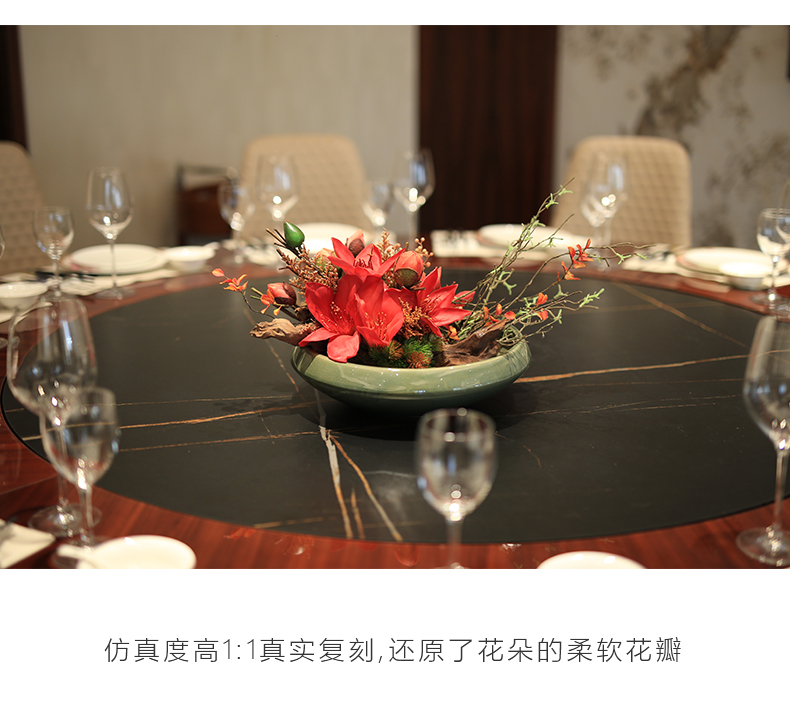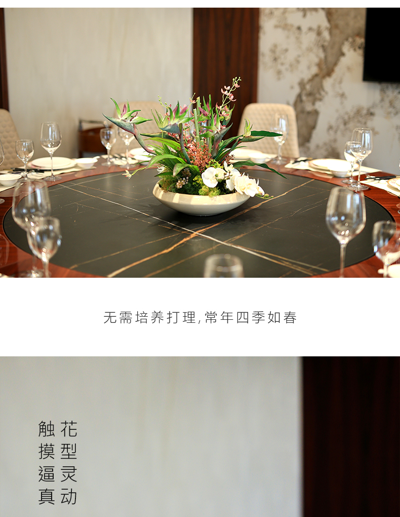 酒店高端餐桌花摆花圆桌转盘中间仿真花摆件餐厅包厢茶室装饰