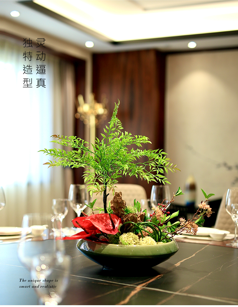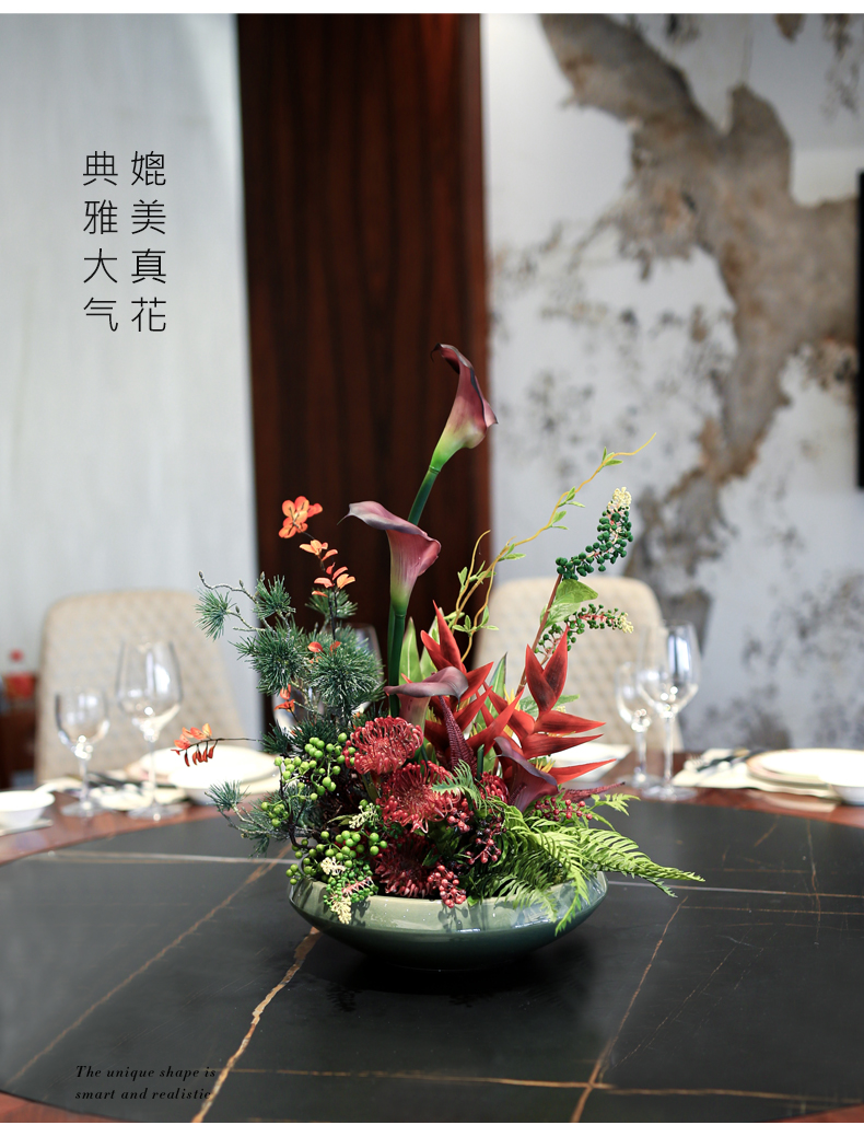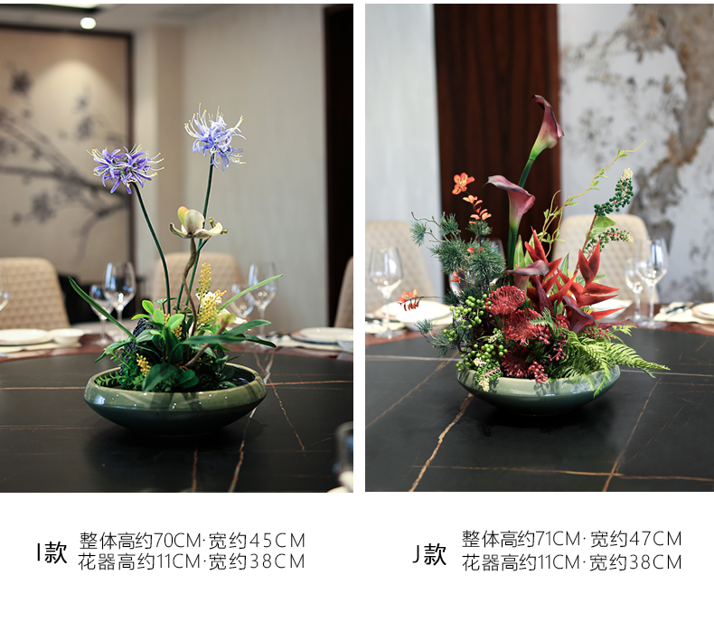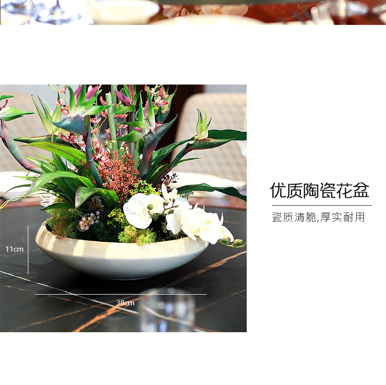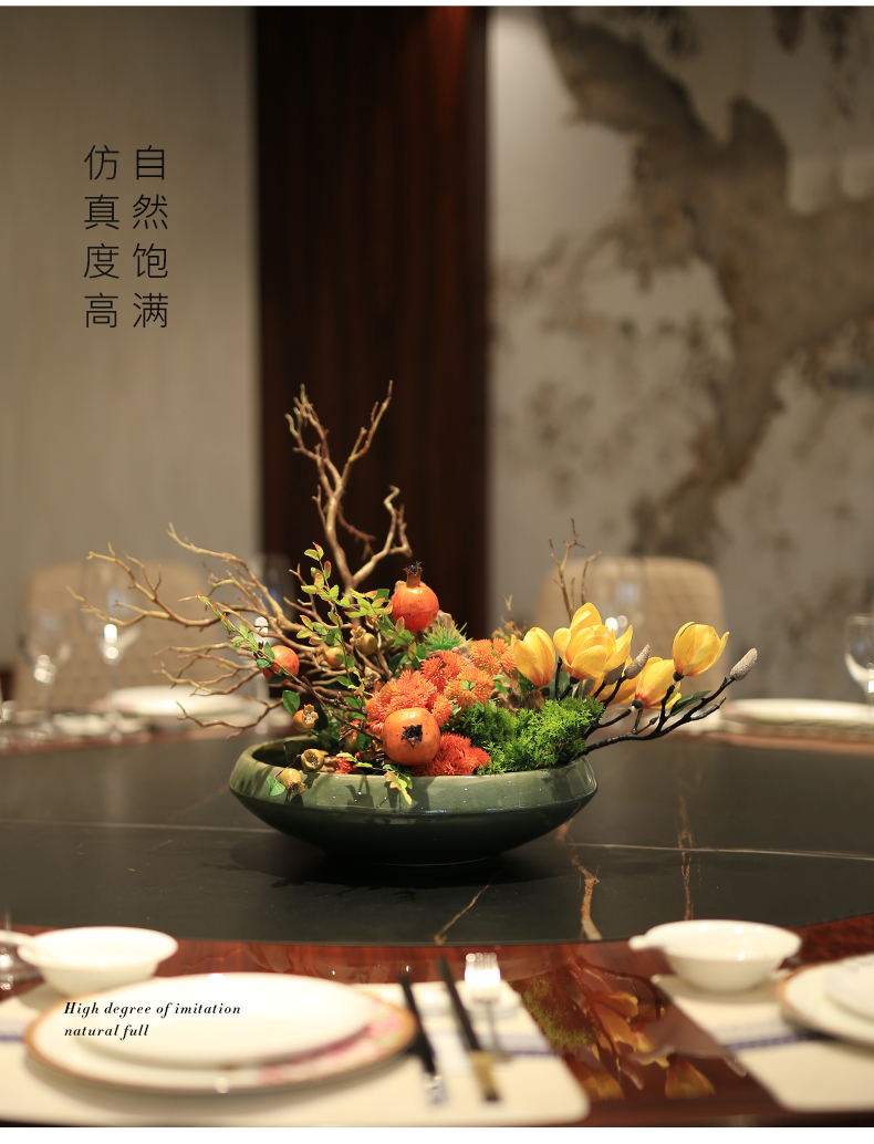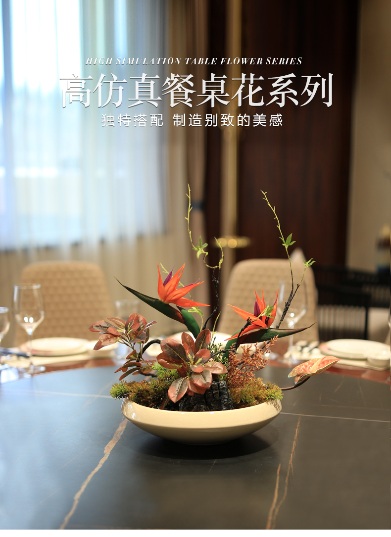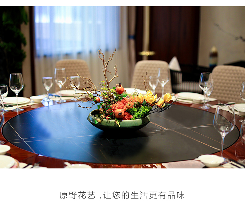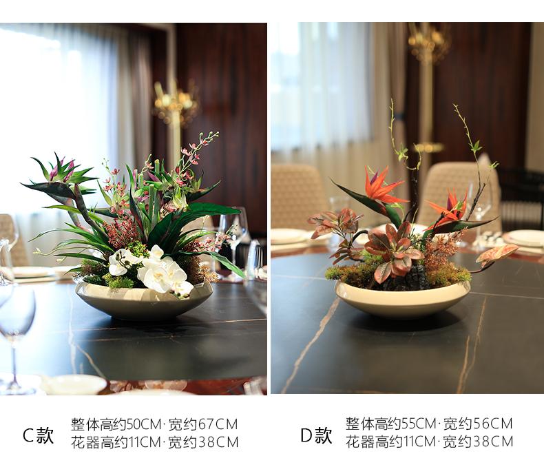 酒店高端餐桌花摆花圆桌转盘中间仿真花摆件餐厅包厢茶室装饰