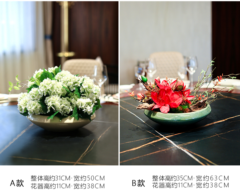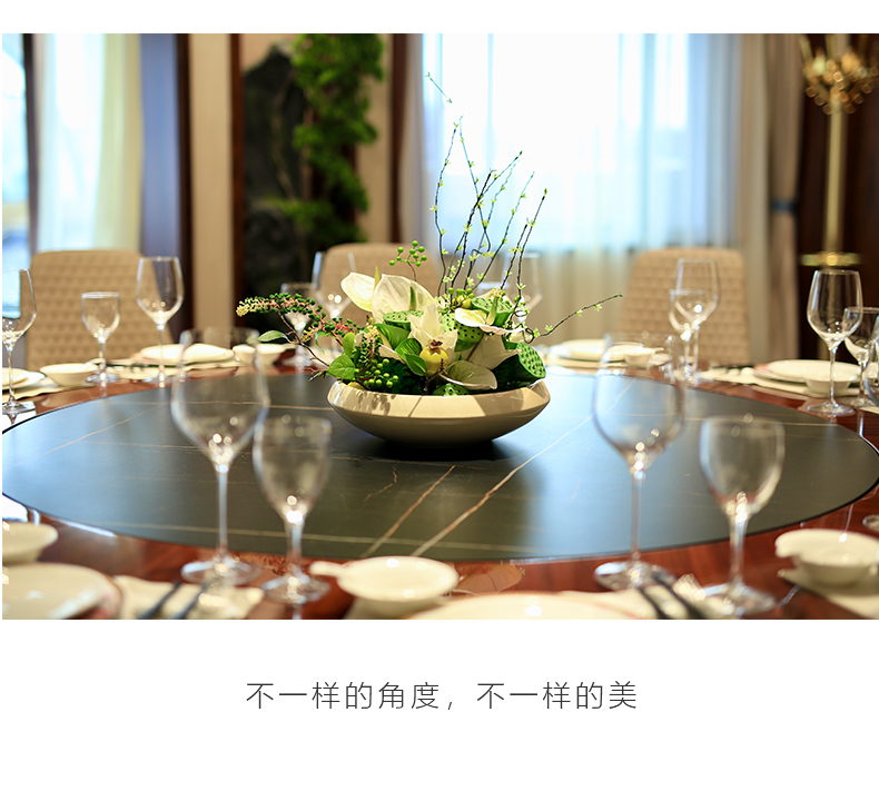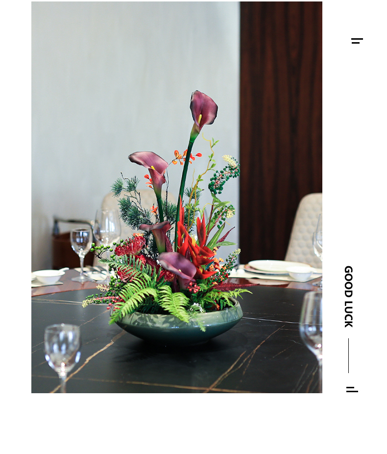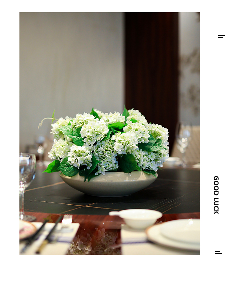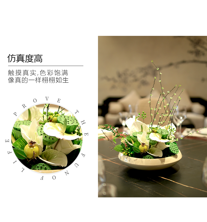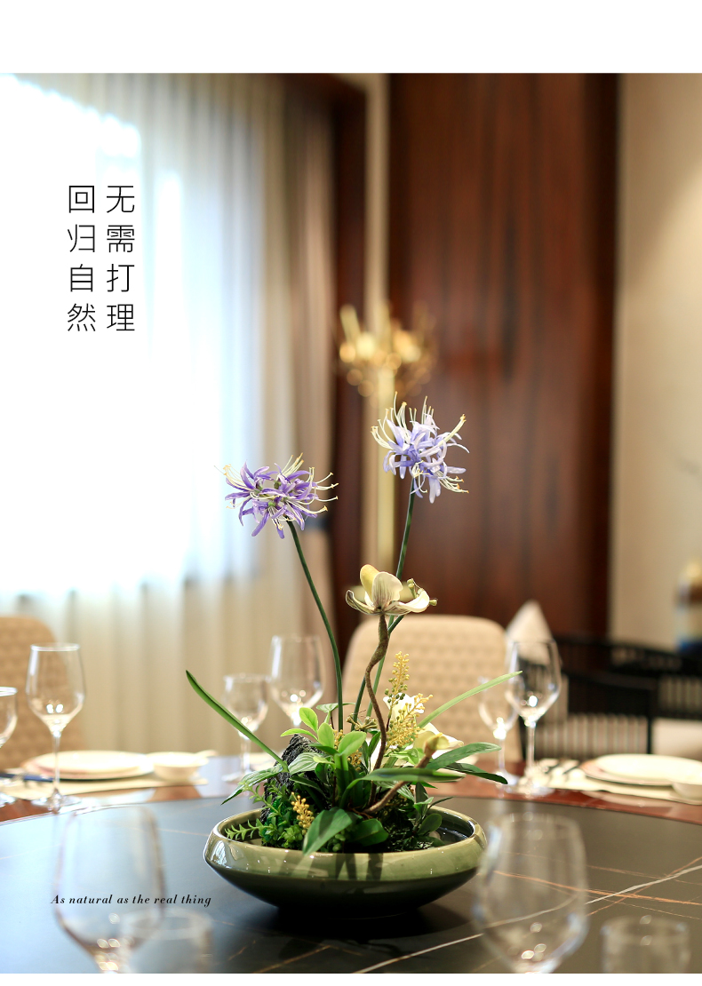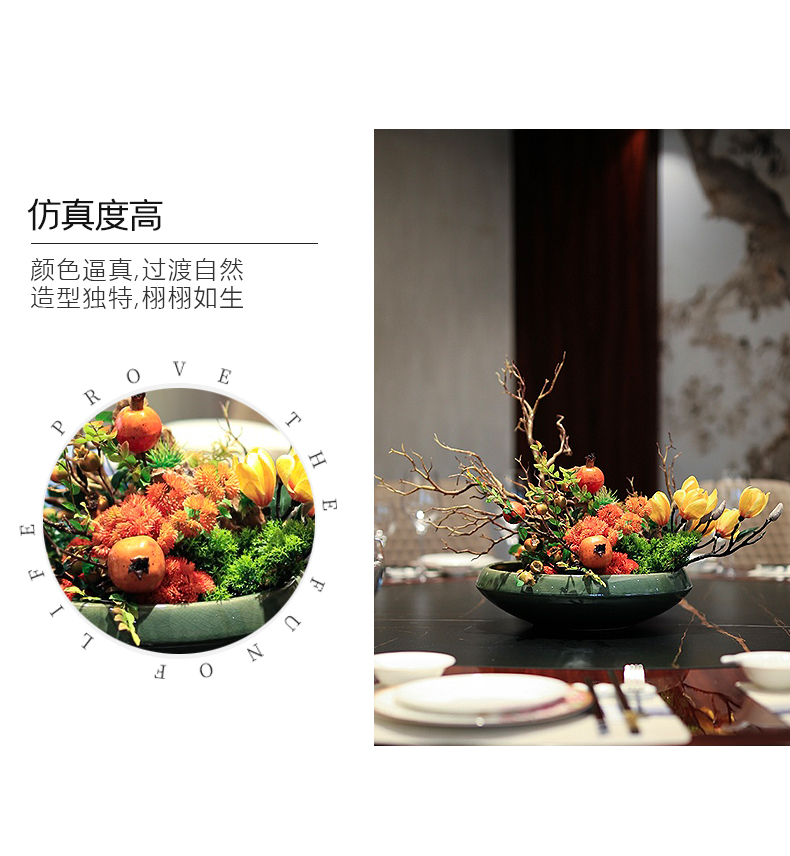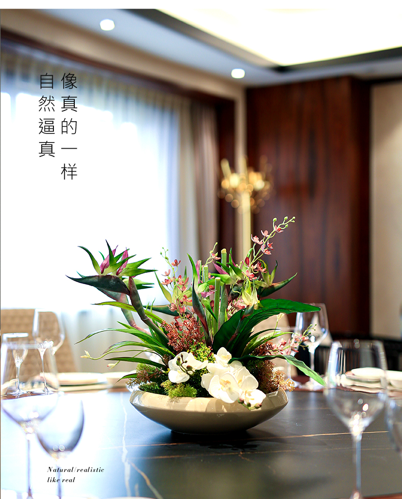 酒店高端餐桌花摆花圆桌转盘中间仿真花摆件餐厅包厢茶室装饰