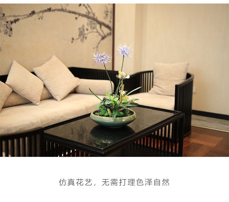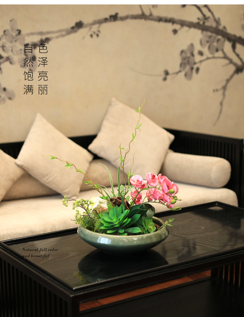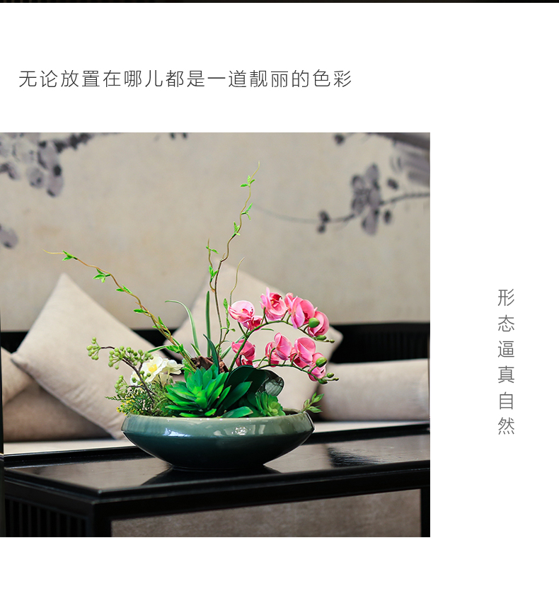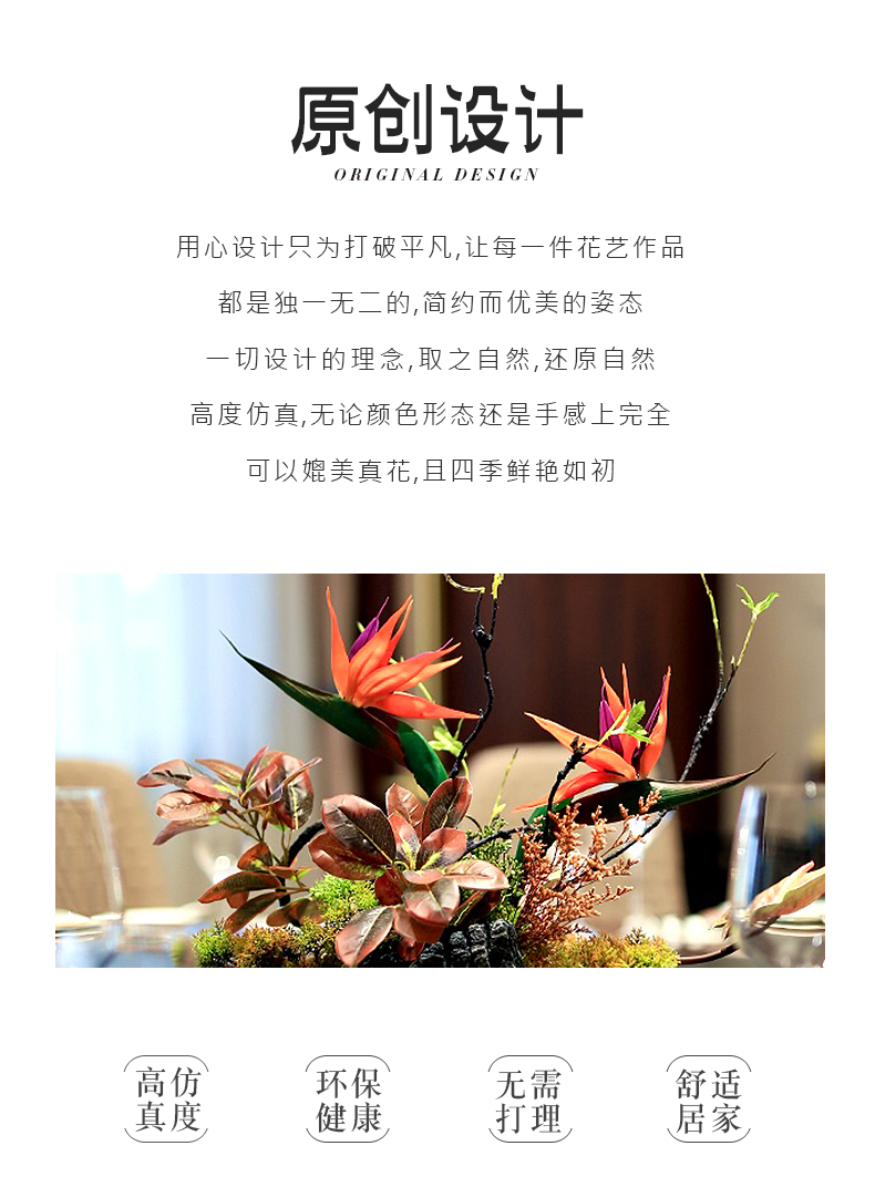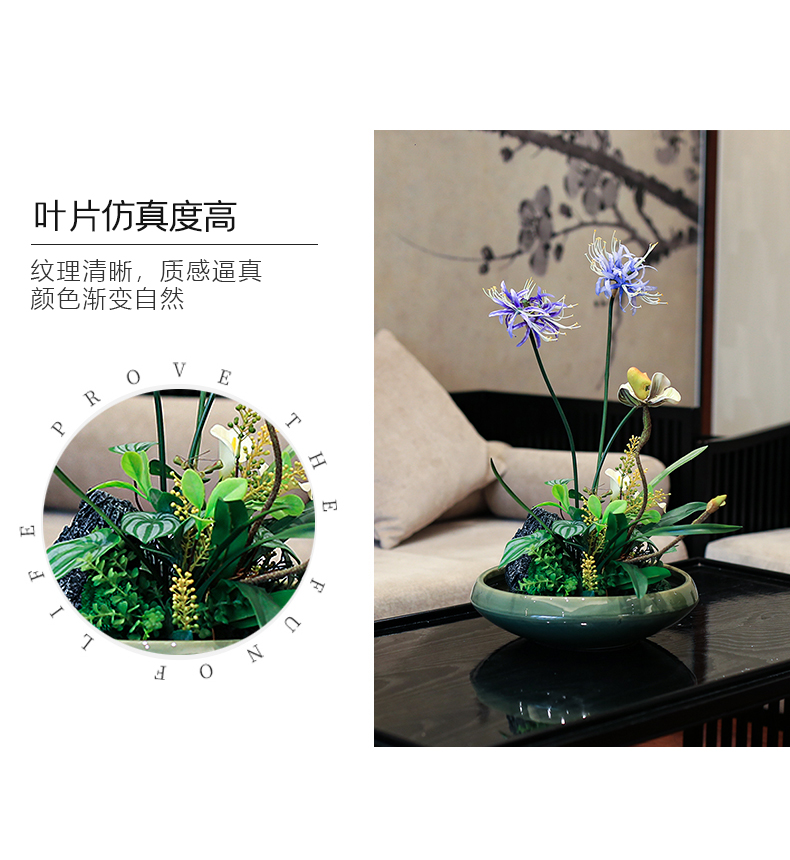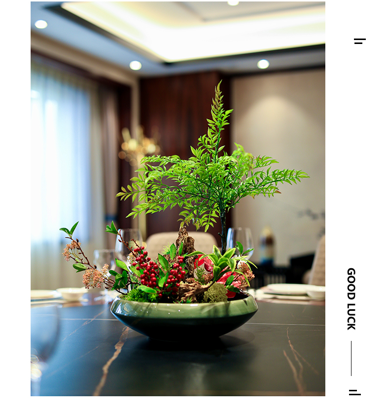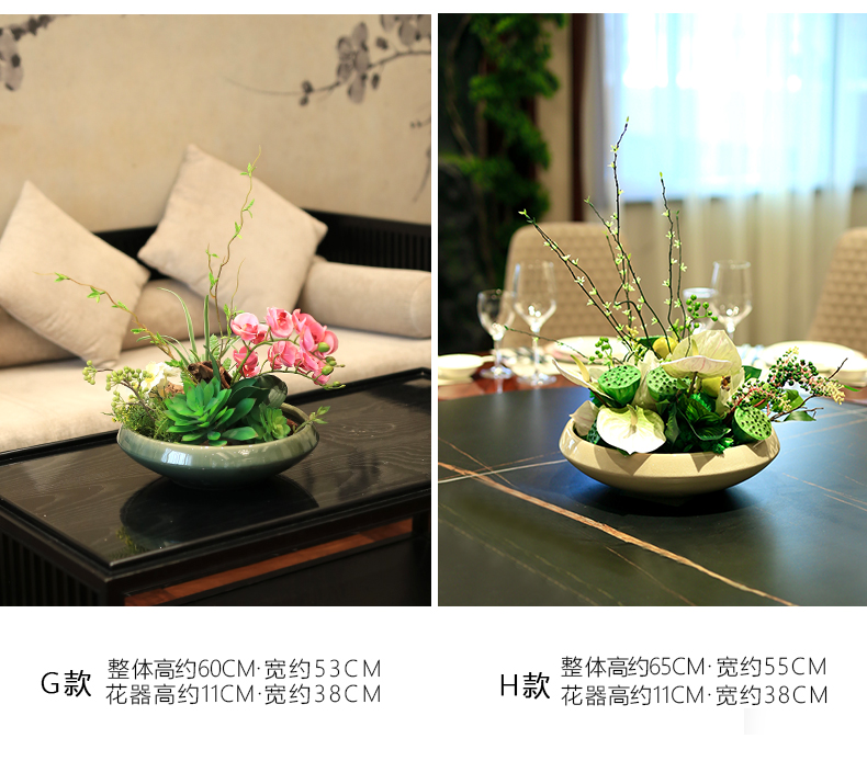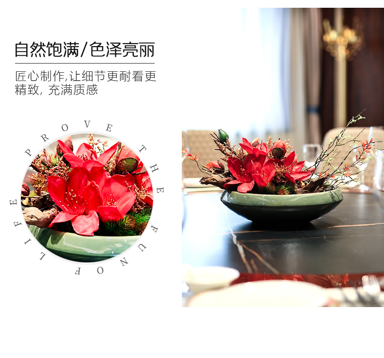 酒店高端餐桌花摆花圆桌转盘中间仿真花摆件餐厅包厢茶室装饰