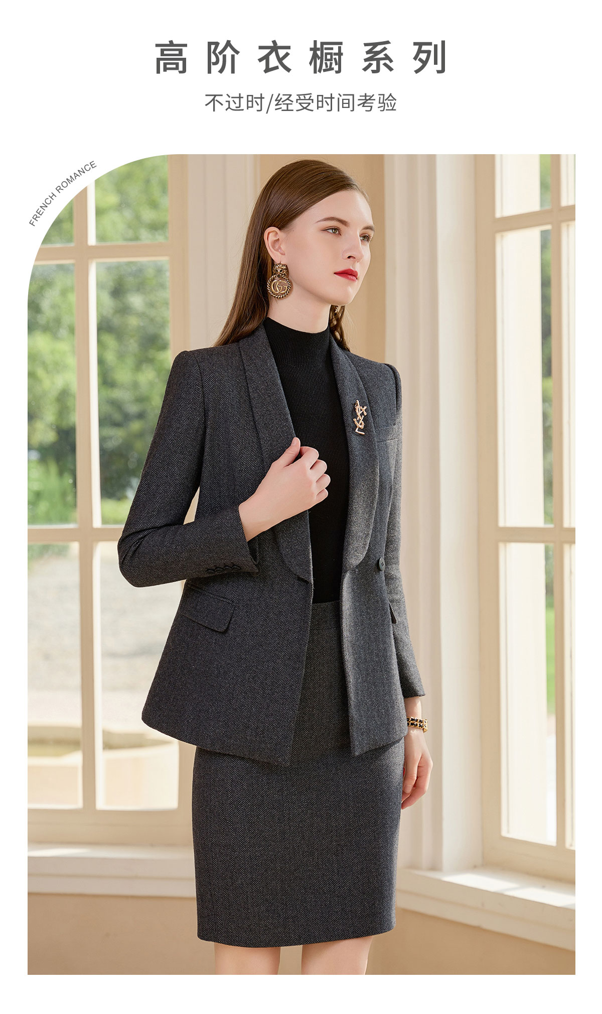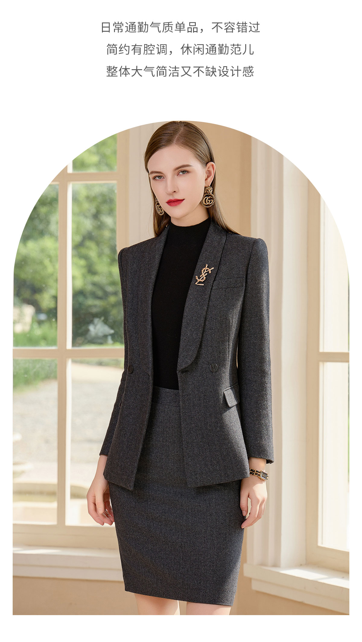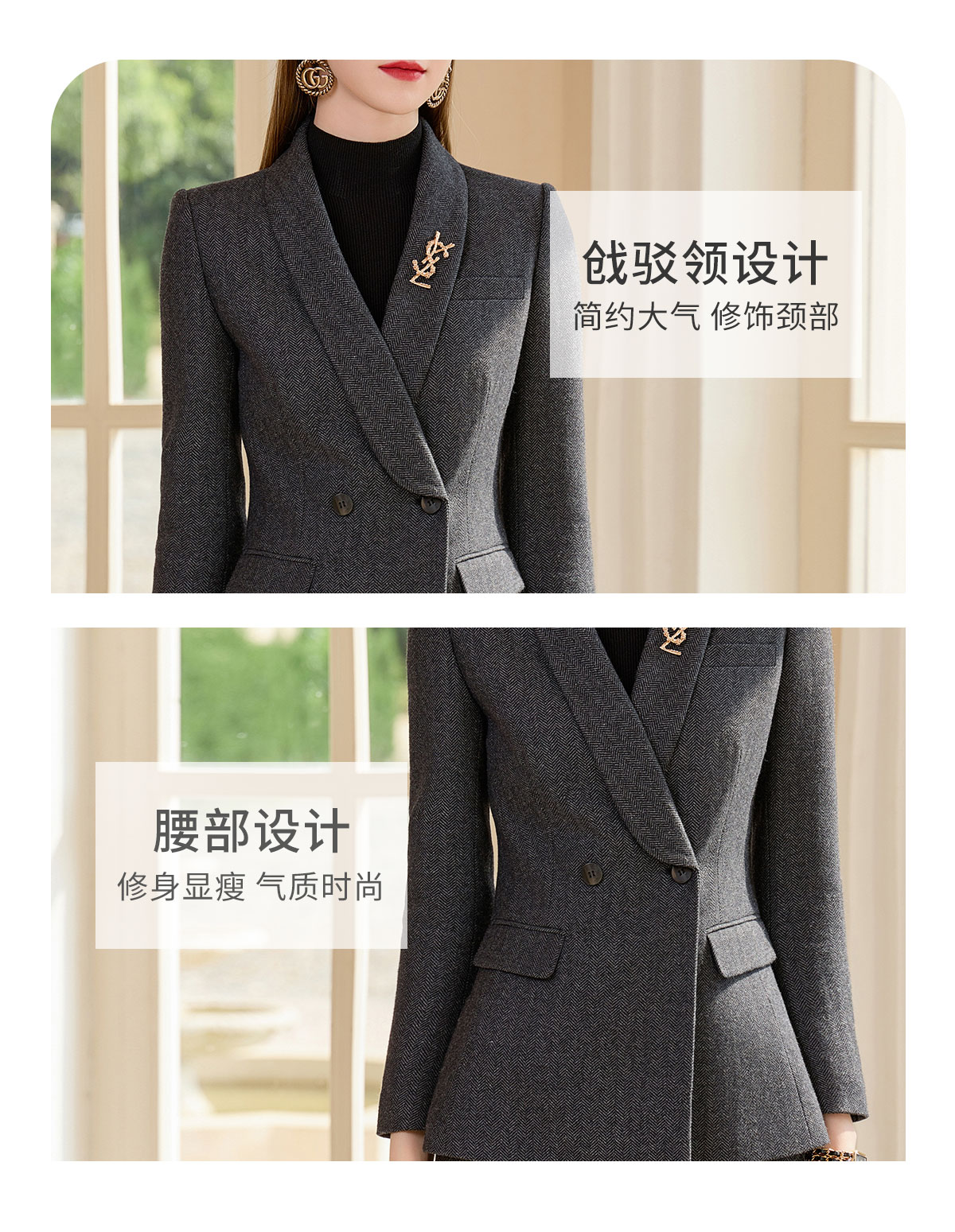 AD冬季新款西装女老钱风人字纹青果领西服外套加厚羊毛职业装套裙