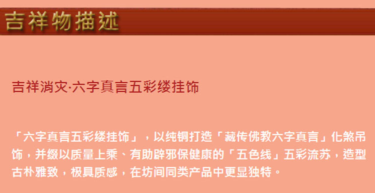 【麦玲玲正版授权】吉庆堂六字真言五彩缕挂饰