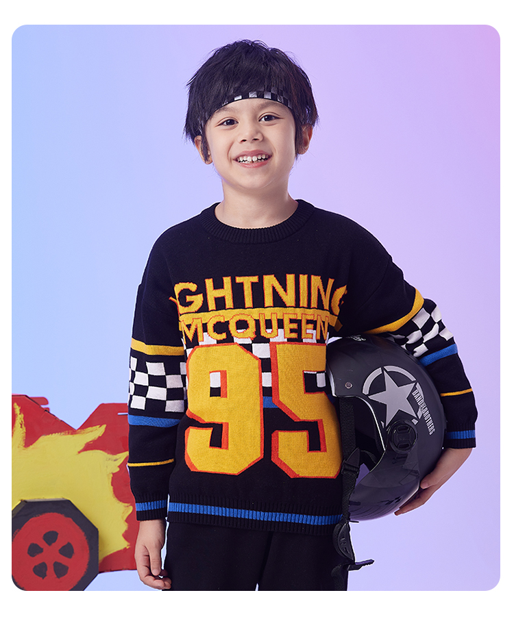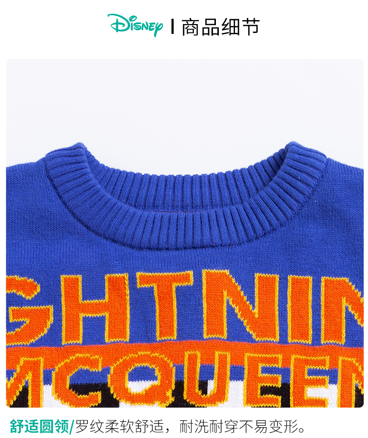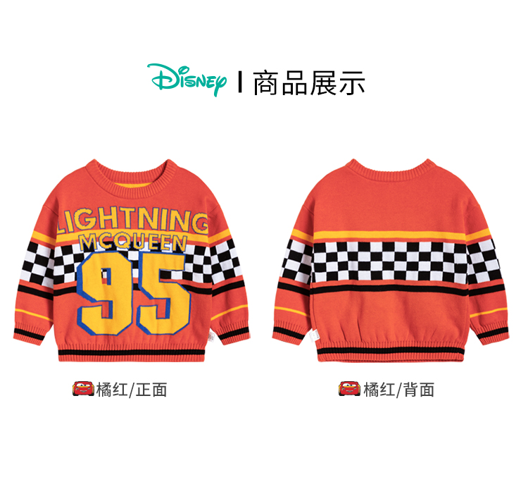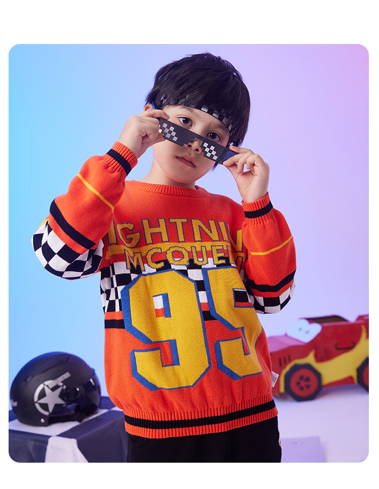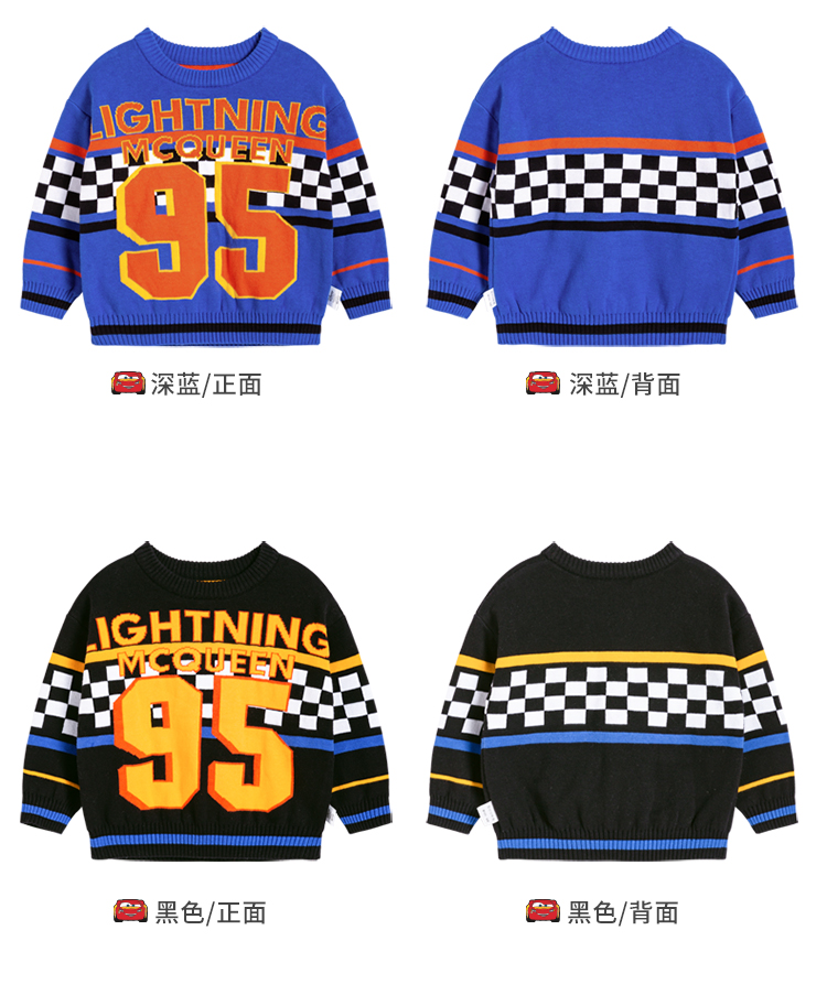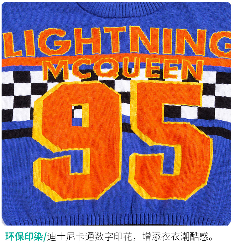 迪士尼麦昆赛车酷炫男童春秋新款宝宝针织保暖套头毛衣