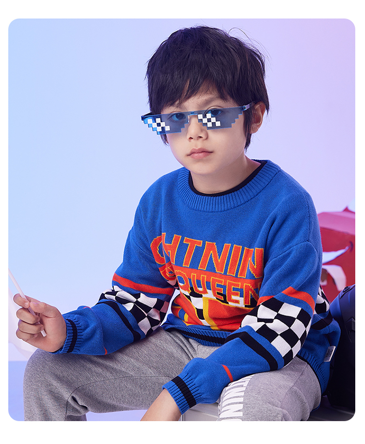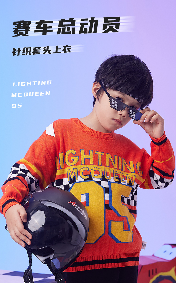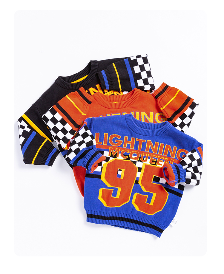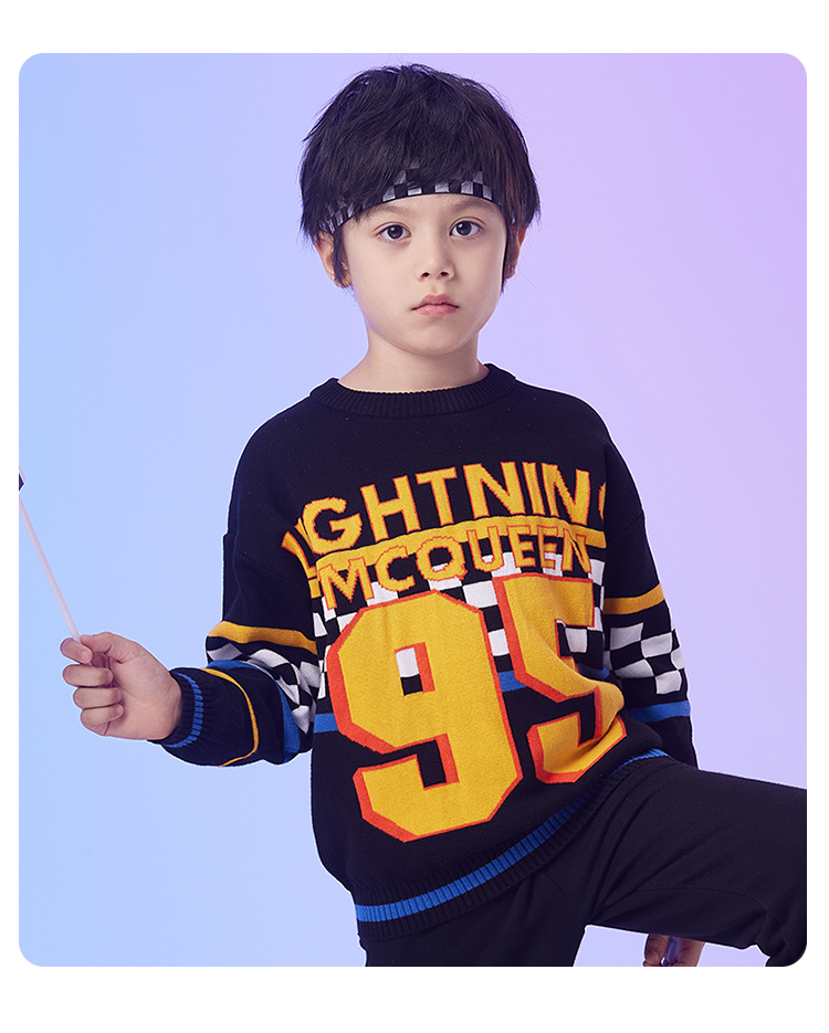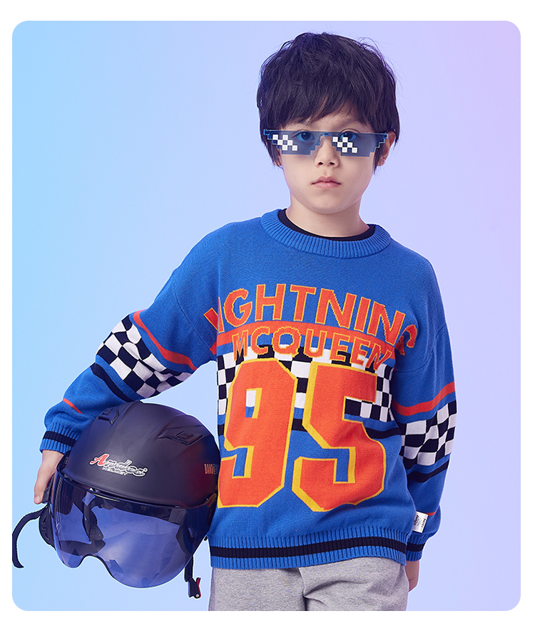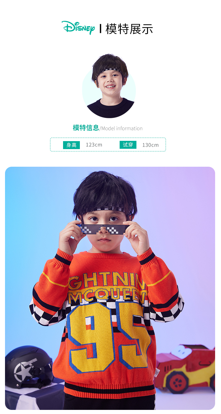迪士尼麦昆赛车酷炫男童春秋新款宝宝针织保暖套头毛衣