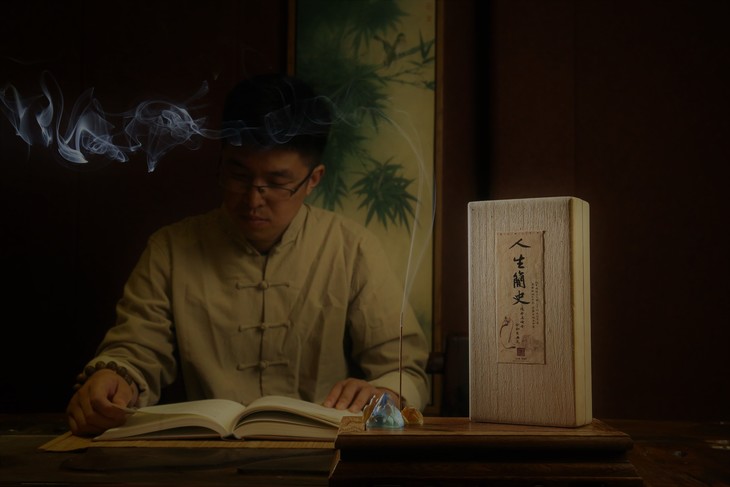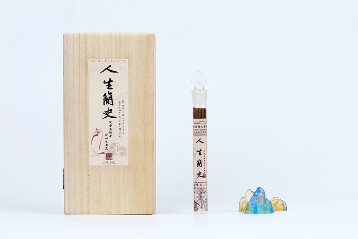 以沉香、印度老山檀、海南降真香、海南紫油梨、印尼公丁香、四川广木香、九节石菖蒲、苏门答腊龙脑、泰国安息香、西藏甘松、越南紫油桂等诸香之韵,将苦辣酸甜四味之韵皆入香中,因此,我们也将这支香的名字命名为<人生简史>。