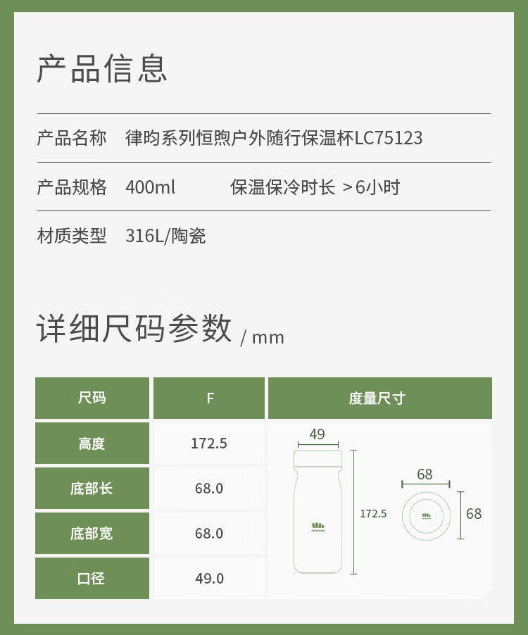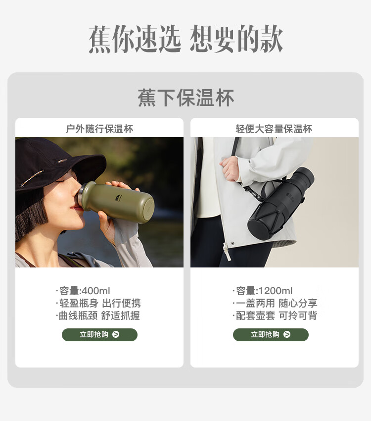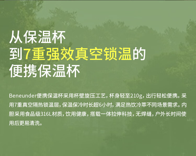 蕉下(beneunder)保温杯水杯子316L不锈钢400ml户外便携 LC75124 不锈钢