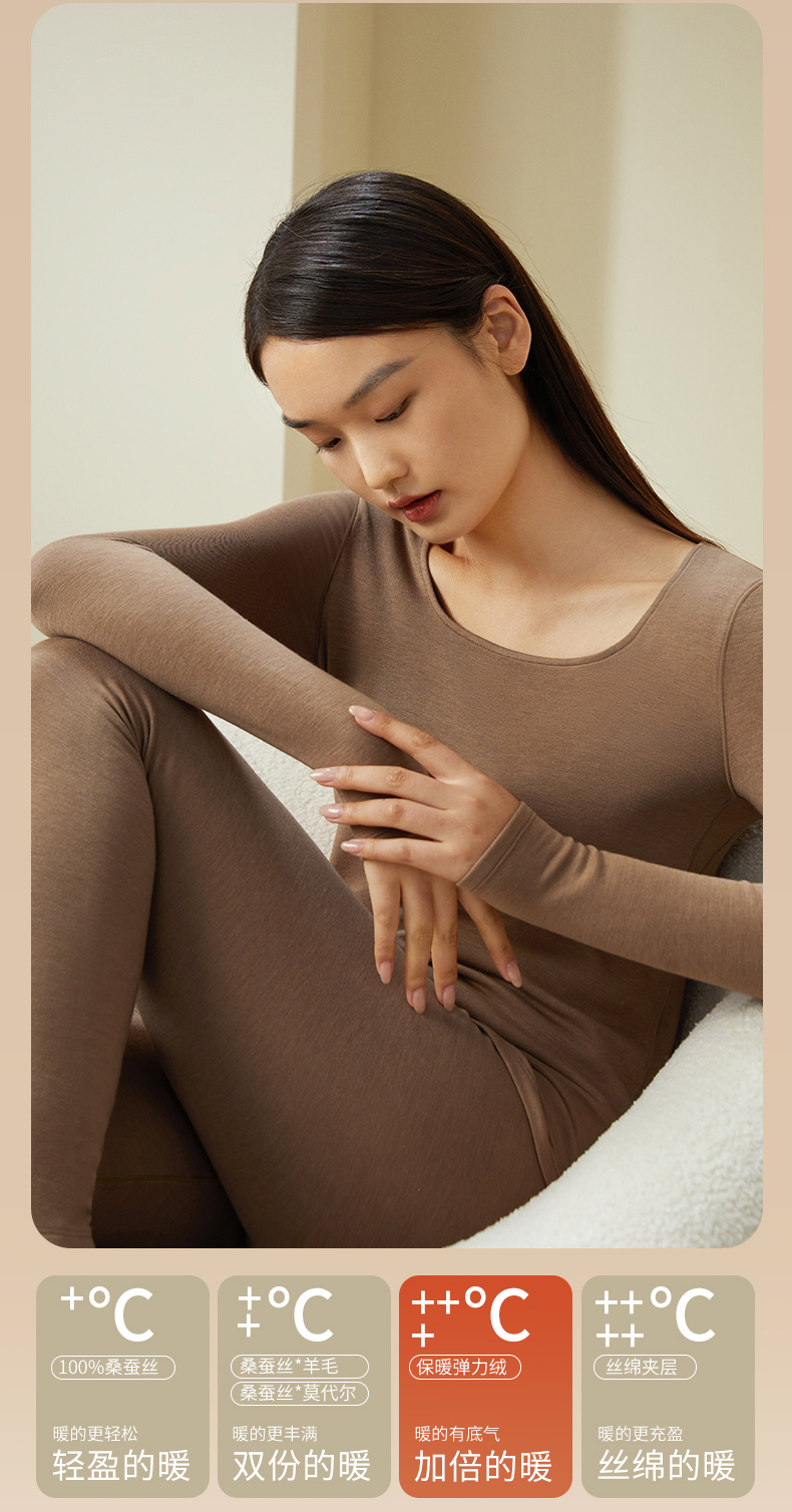 【暖暖保暖衣】金三塔桑蚕丝拉绒打底裤女秋冬贴身保暖内衣 NZFDD901