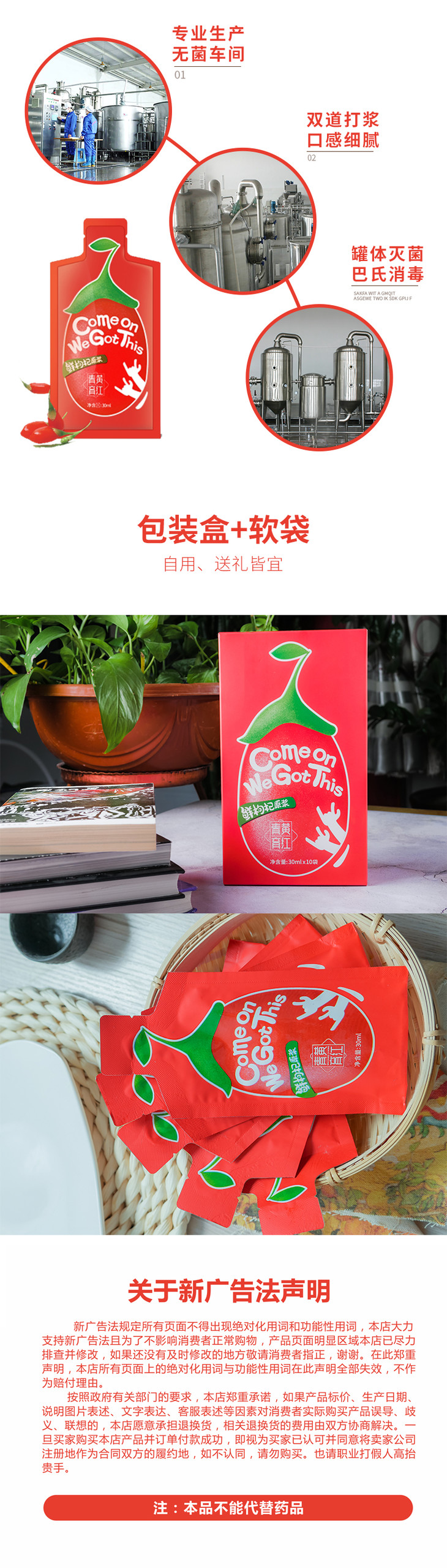 【买三送一】沃福百瑞 青黄育红宁夏鲜枸杞原浆30ml*10袋/盒, 出口品质,活性更高!买三送一,送试饮一袋!
