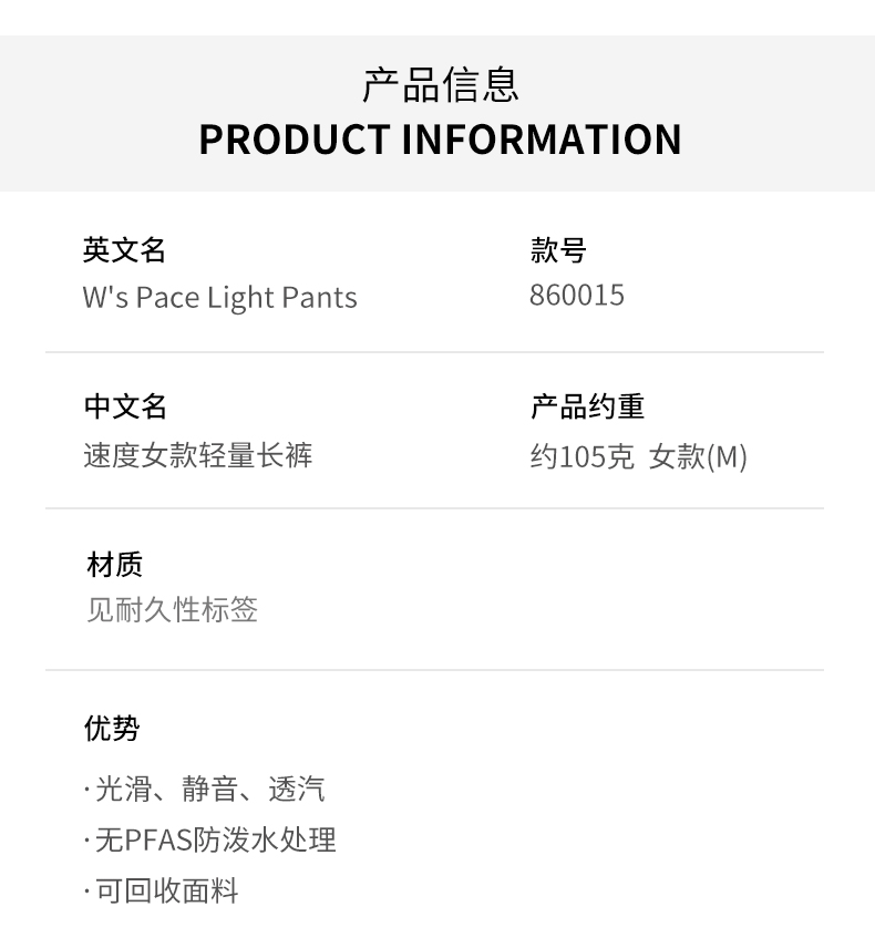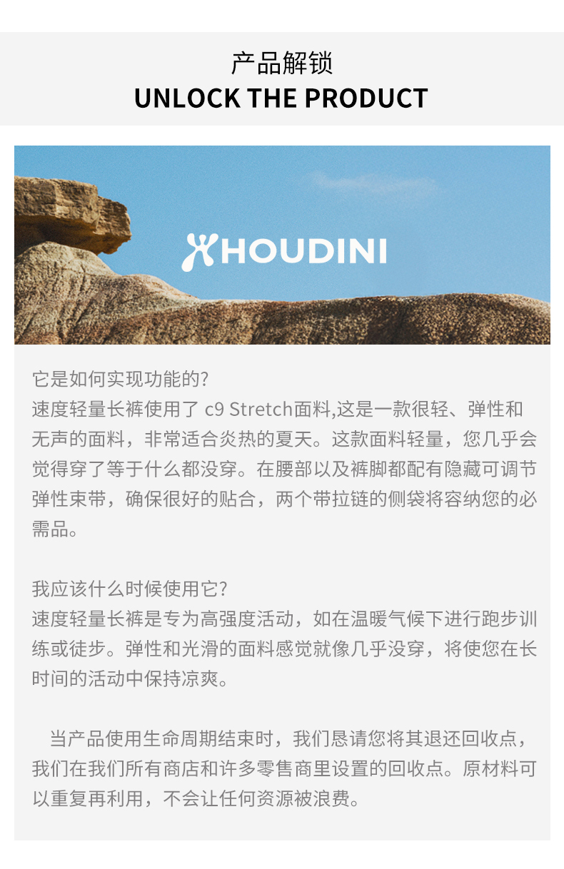 HOUDINI胡丁尼 Pace Light 速度 女款户外轻量透气长裤860015
