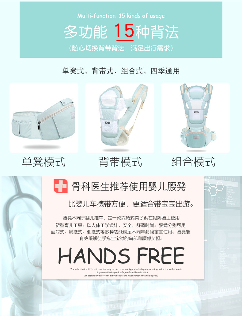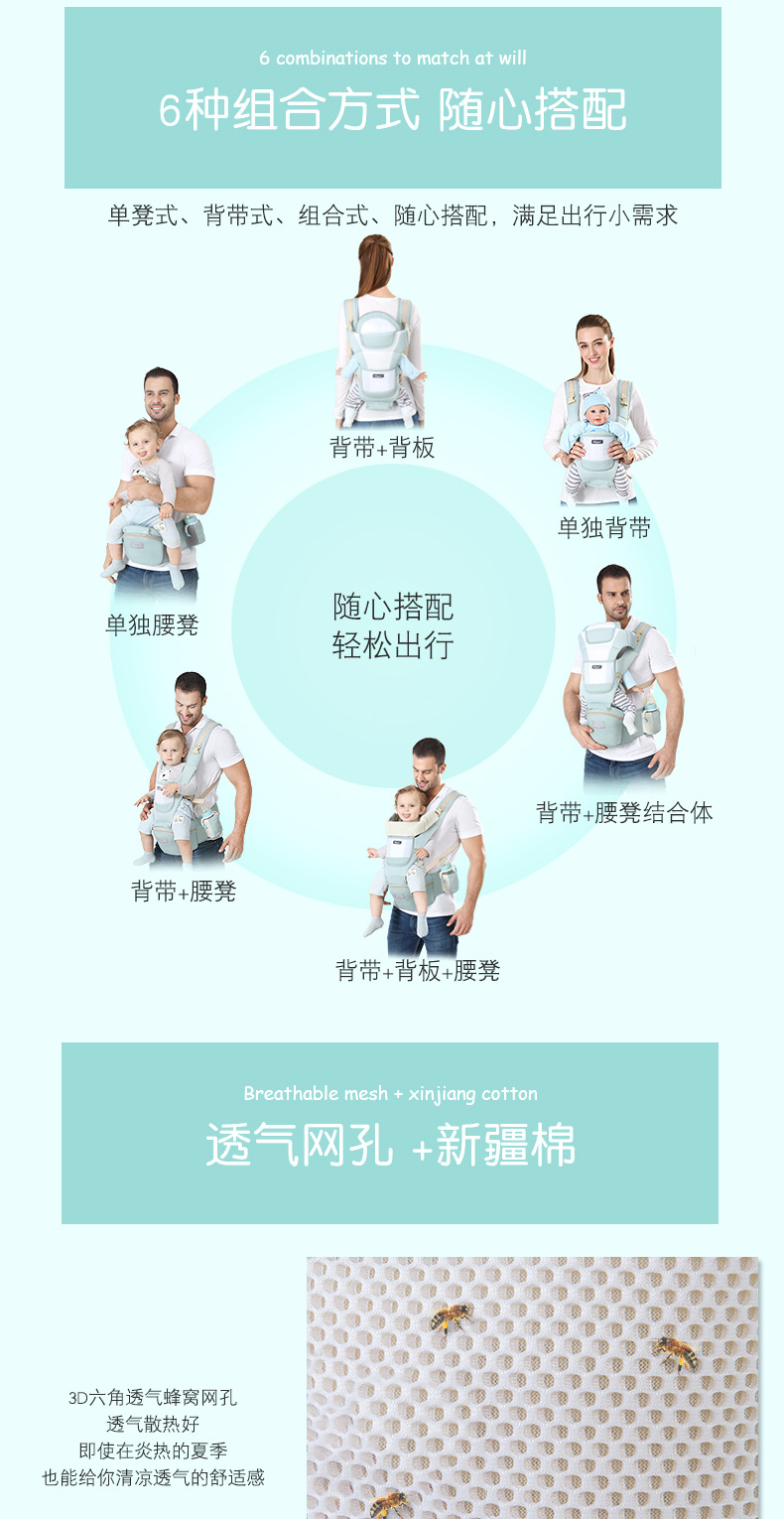 【多功能随心切换15种背法 轻松抱娃】婴儿背带腰凳可收纳宝宝腰凳抱式前后两用外出抱娃 神器