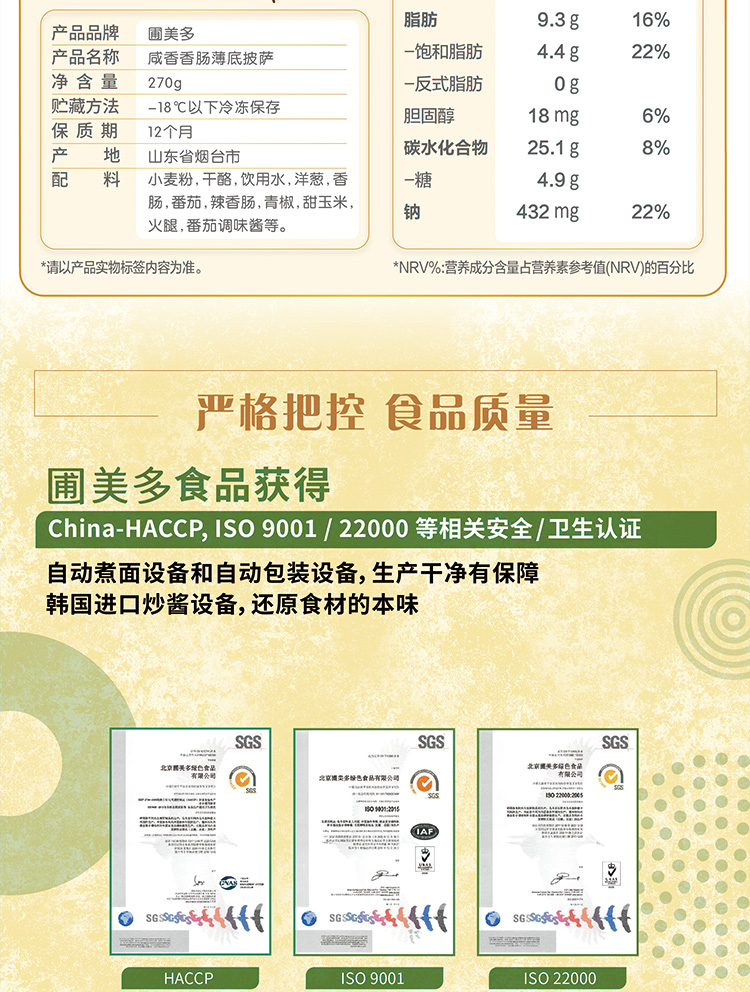 圃美多咸香香肠薄底披萨270g