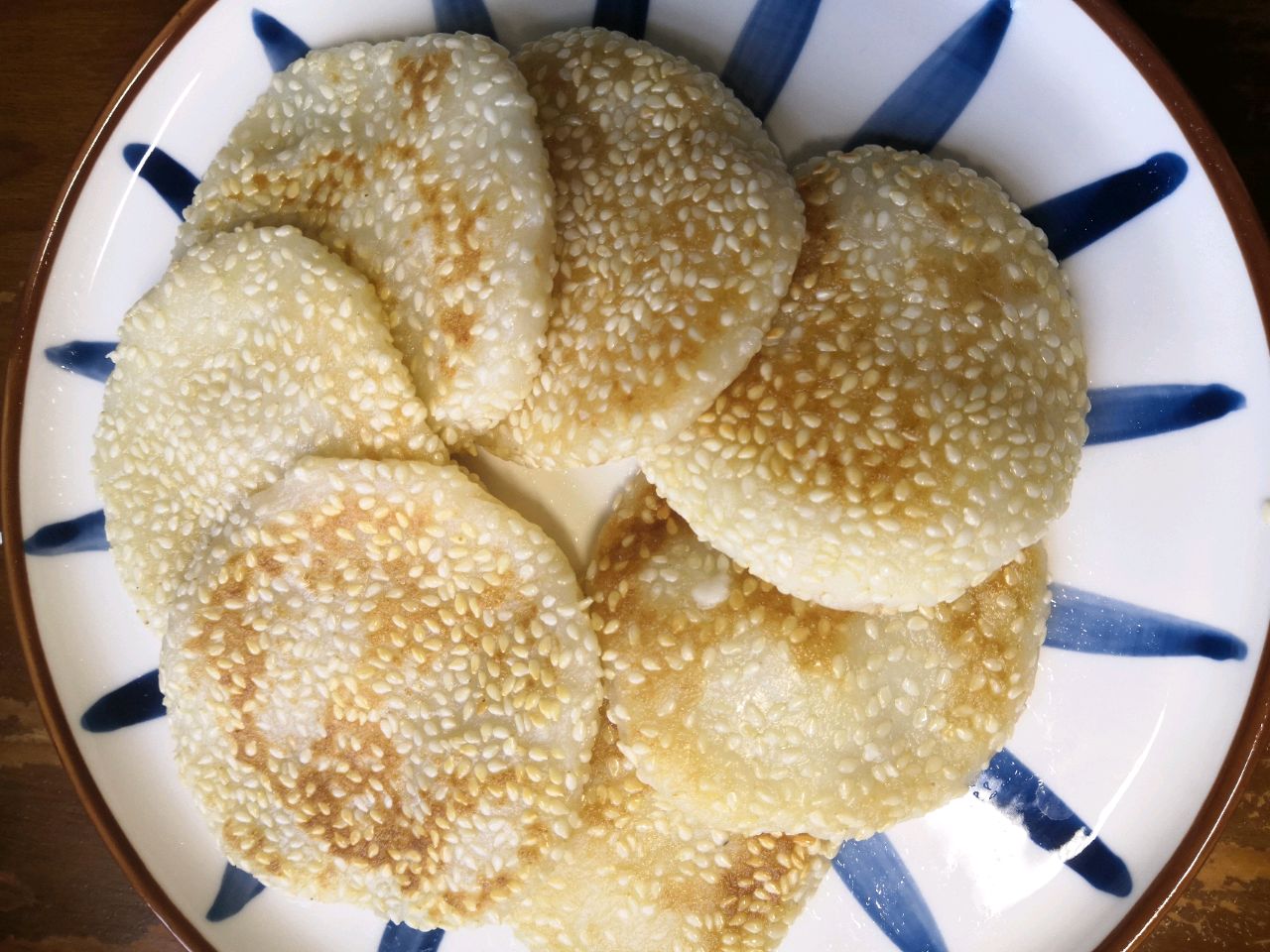 6、把芝麻饼压薄