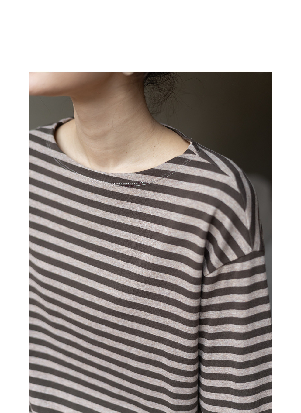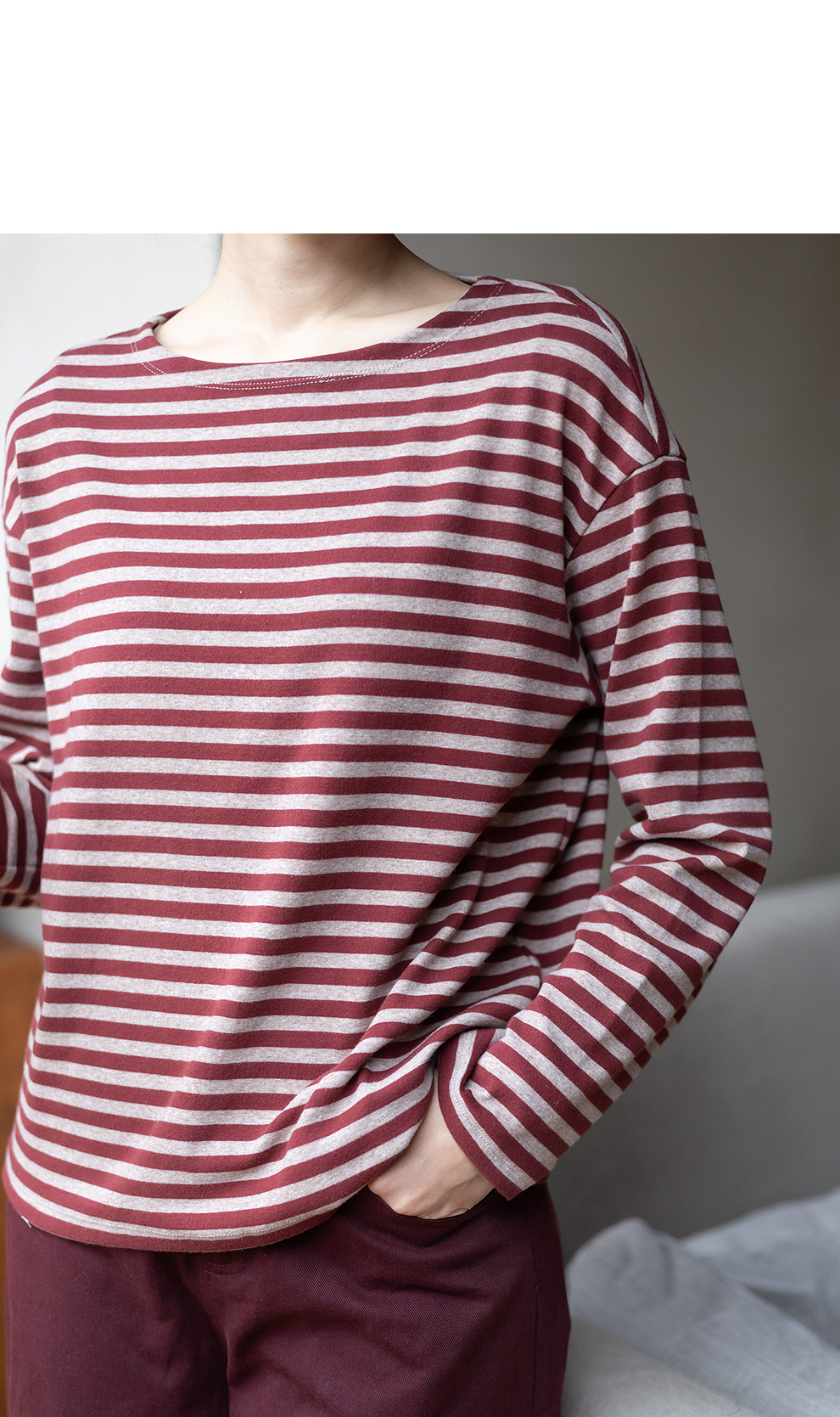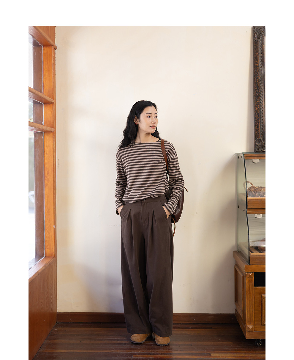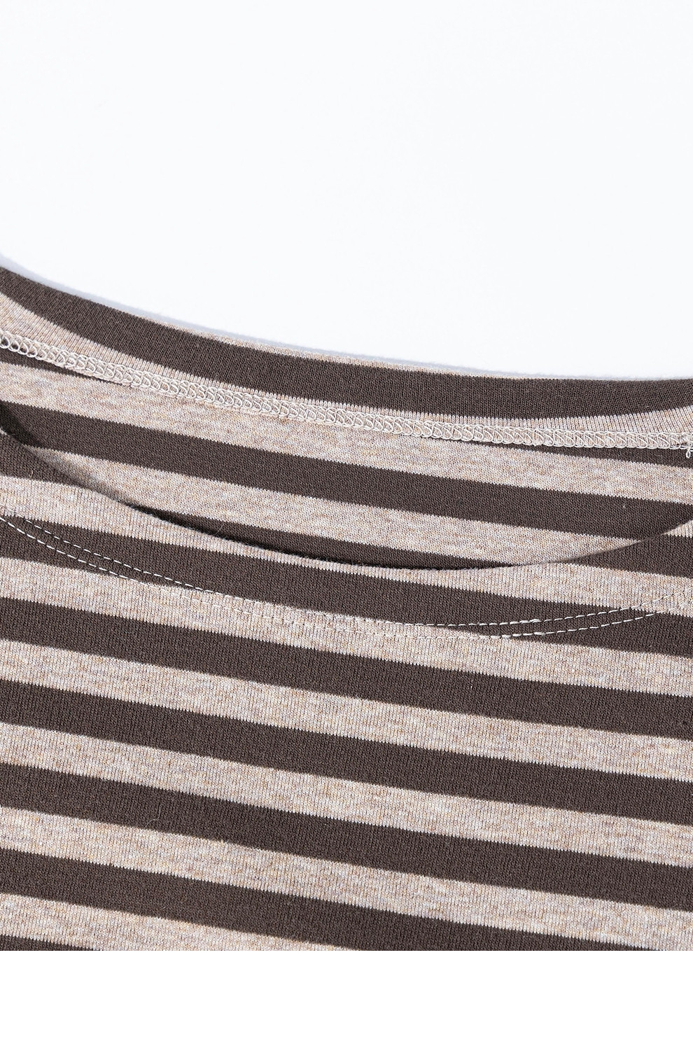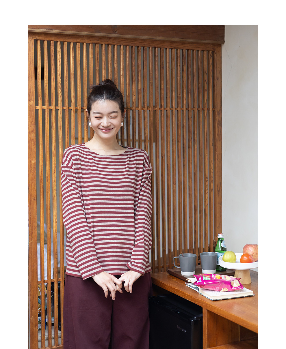 特绽放064朵/如一·棉混氨针织撞色条纹长袖T恤一字领百搭打底衫