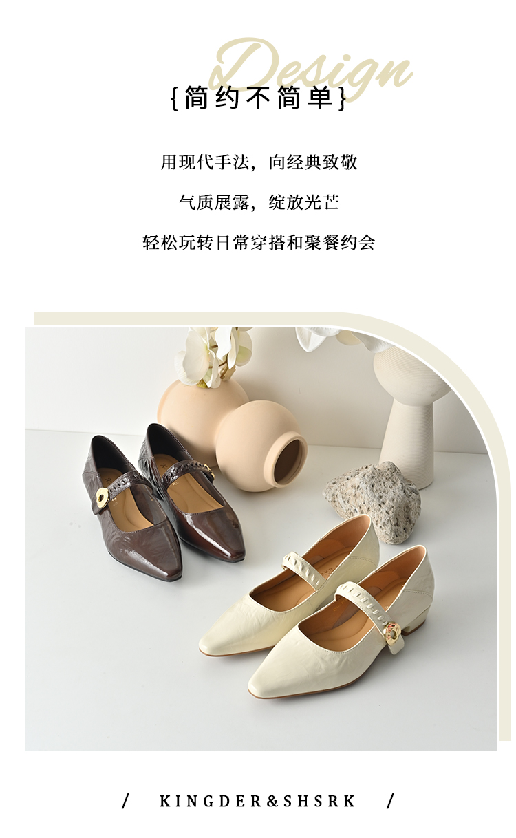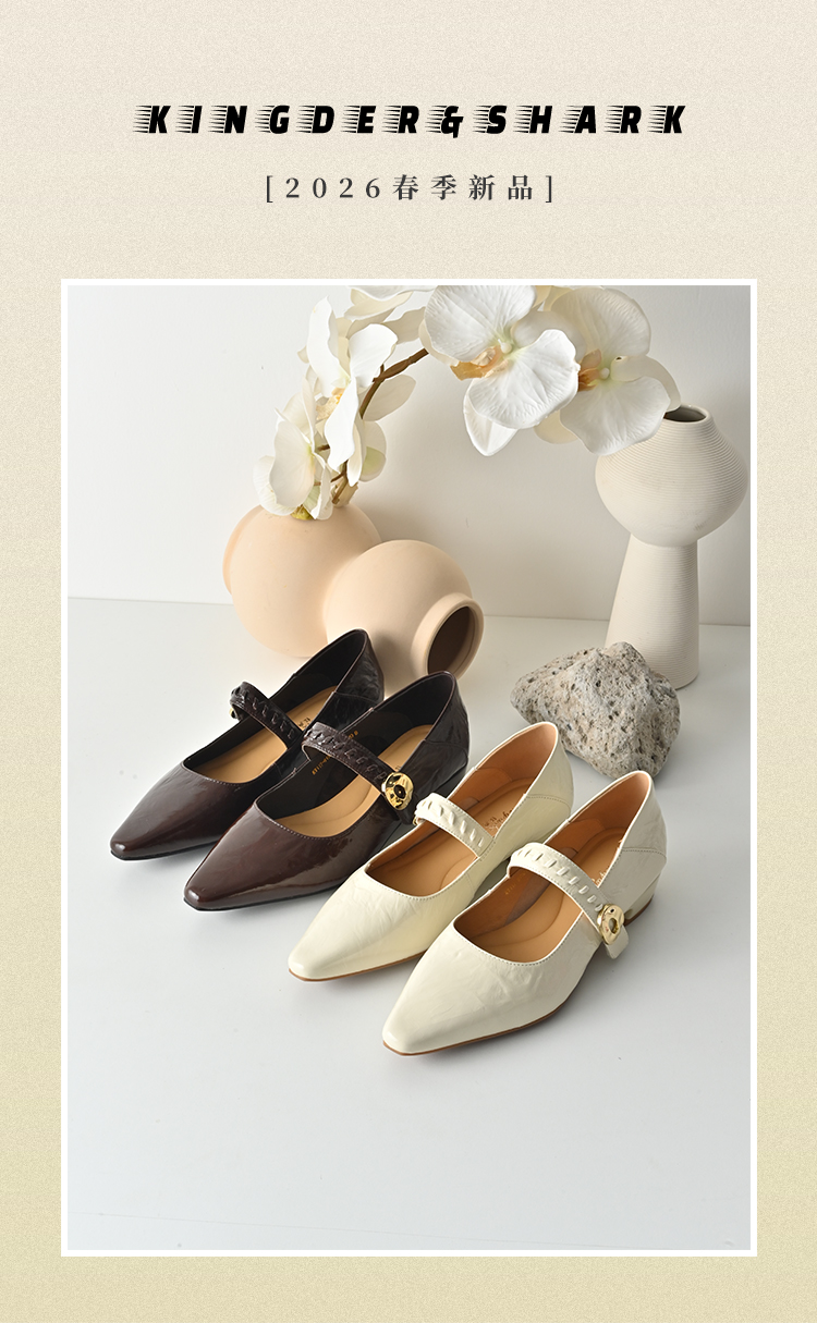 经典鲨2026年春专柜新款复古牛皮革3.5cm粗跟气质浅口单鞋女KW117-617011