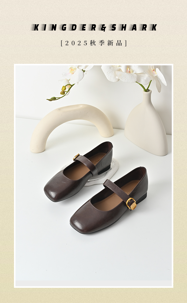 经典鲨2025秋季专柜新款复古方头浅口平底舒适日常通勤单鞋女KW89-517052