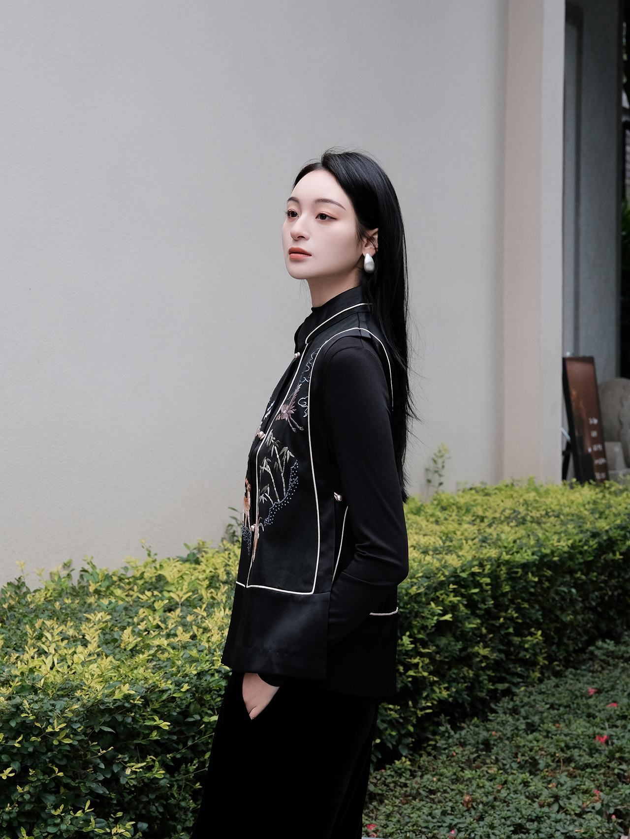 盛唐牡丹| 珍珠白真丝竹子纹偏襟上衣