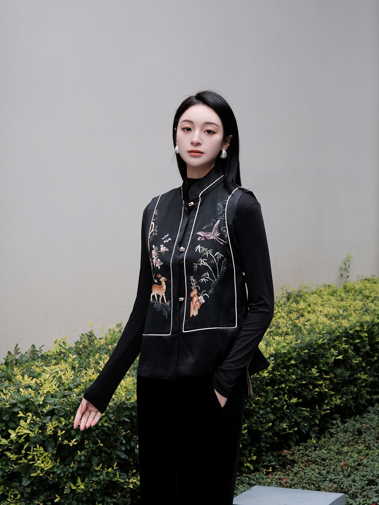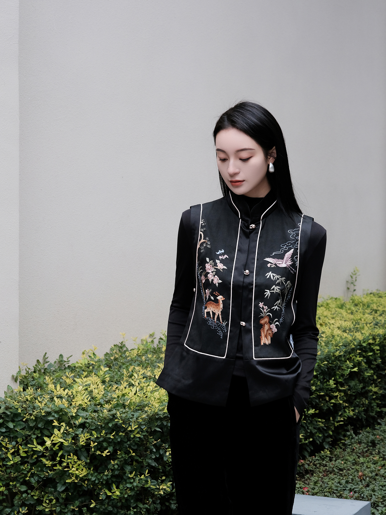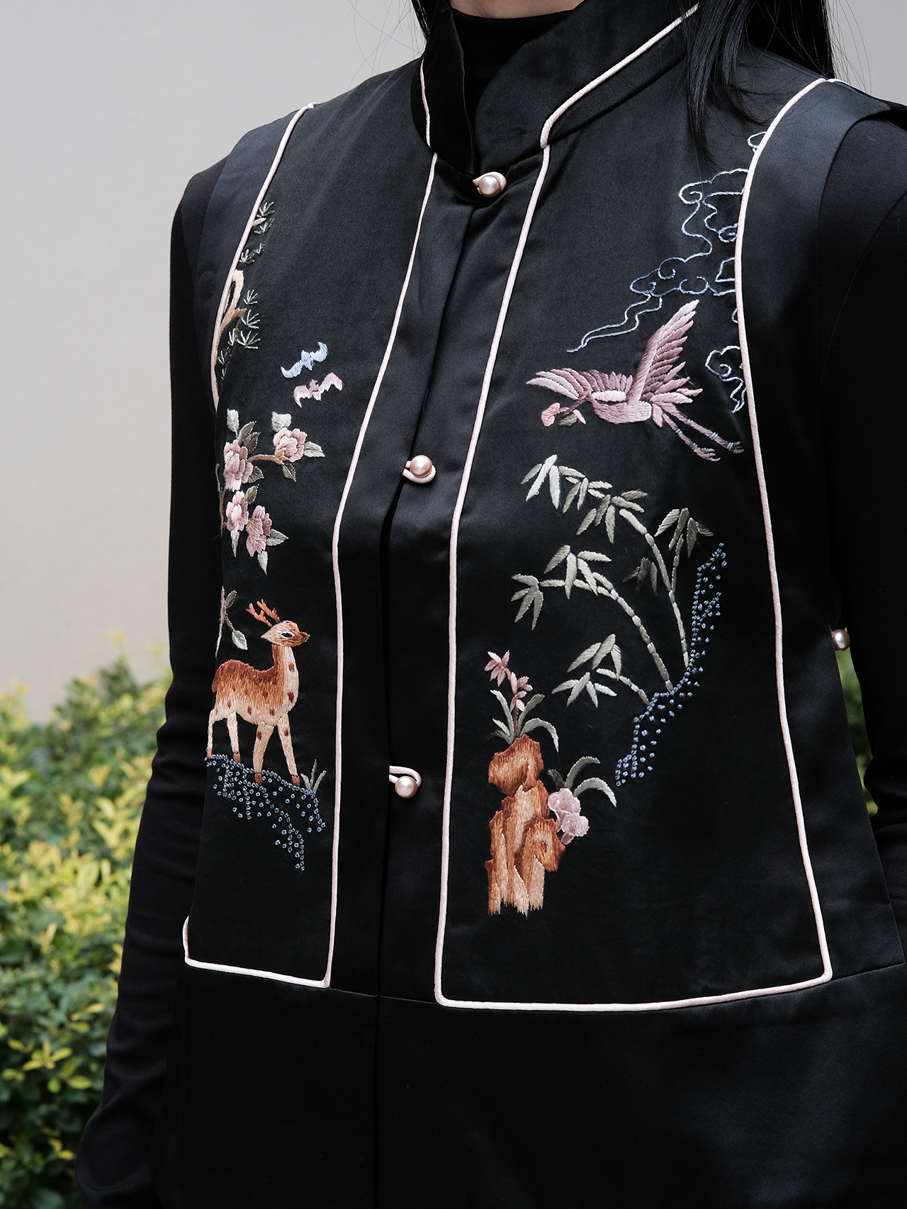 盛唐牡丹|鹤鹿同春手绣真丝马甲