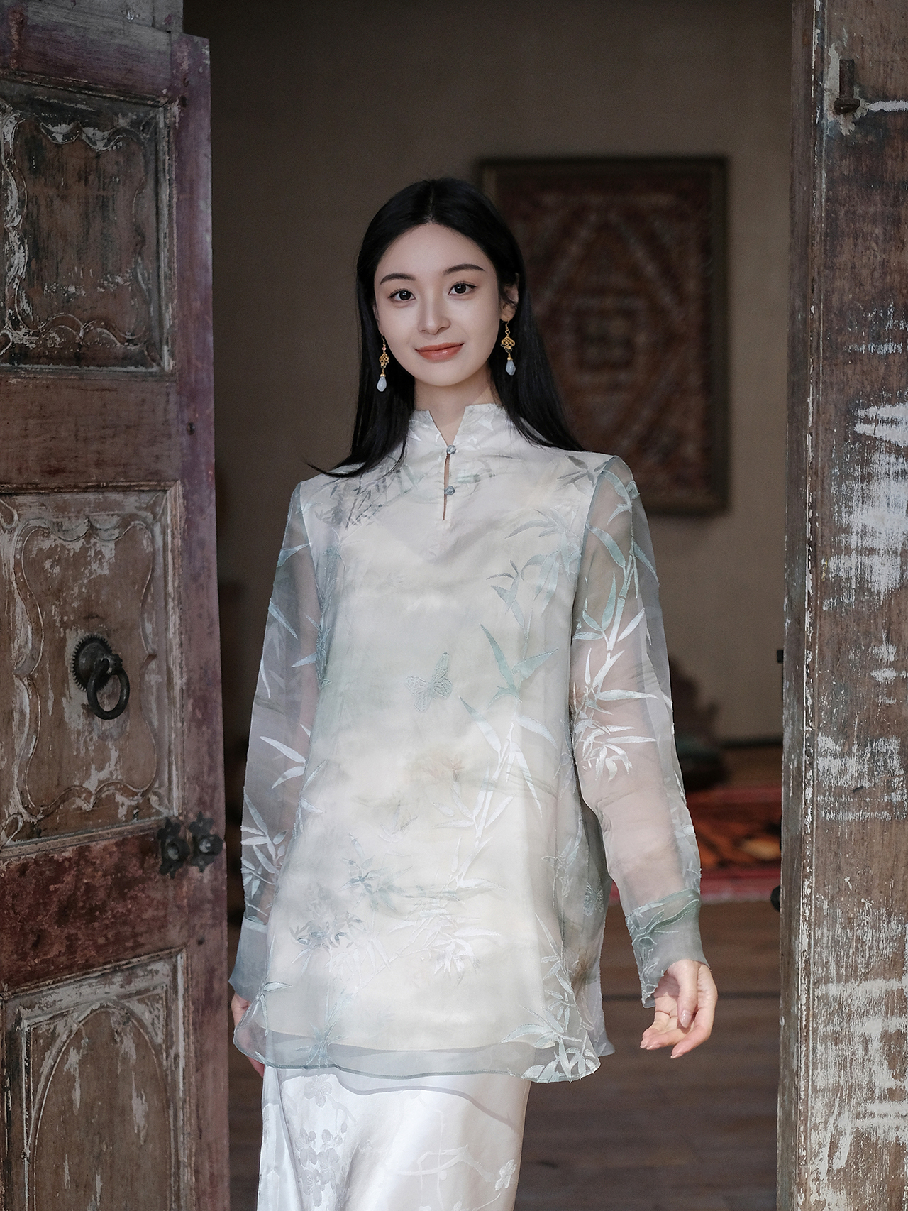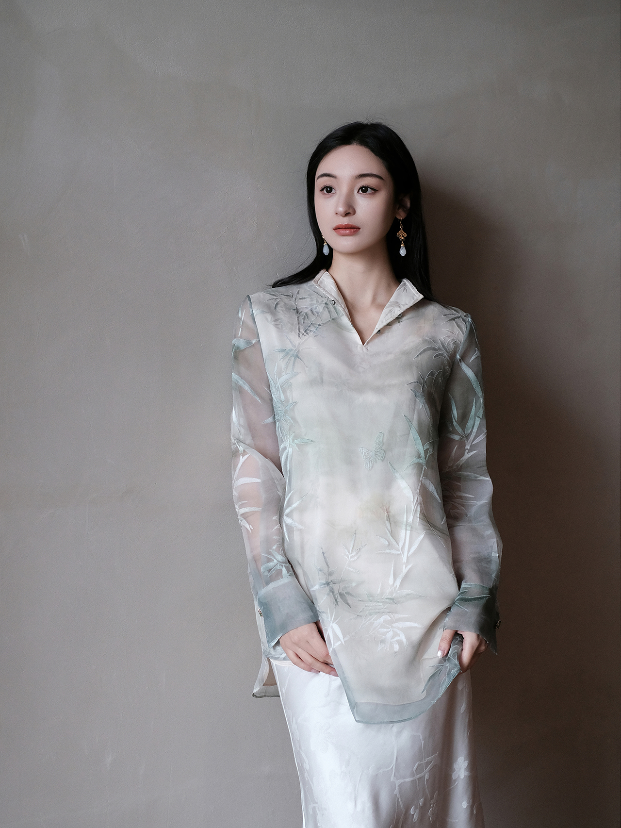 盛唐牡丹 | 竹烟波月真丝绡女上衣