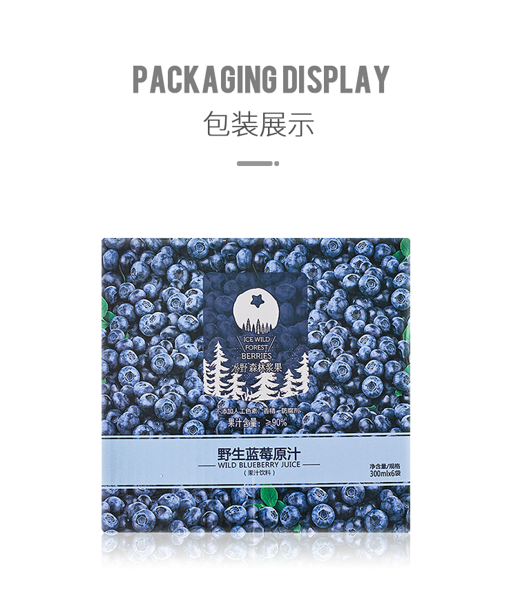 商品名称:野生蓝莓汁 商品规格:300ml*6袋 包装方式:纸箱+彩箱 商品产地:伊春 蓝莓产地:大兴安岭 发货地区:黑龙江省哈尔滨市 承运快递:中通快递 发货时效:48小时 不发货地区:新疆西藏