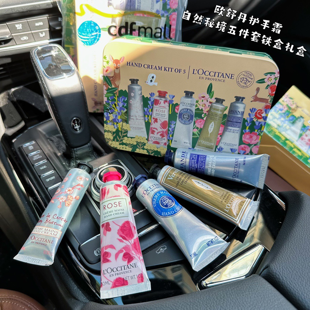 【护手霜自然秘境五件套铁盒礼盒】5x30ml!一盒五支,乳木果30ml1+玫瑰30ml+樱花30ml+马鞭草30ml+薰衣草30ml!现在的冬天怎么能不用护手霜,小小护手霜决定了您的生活品位喔!一眼就喜欢的护手霜套盒,颜值太高了,涂抹的香味也很戳心!关键入个护手霜还省下了香水钱!自用送亲友醉合适不过了!口碑中的口碑了!每年冬天都是热度不下的爆款!掌柜实力自留种草!咱家真的是大浮力啦!这个护手霜真的是一边涂一边在吸收!很滋润!推开之后又能被瞬间吸收,一点都不油腻!质感细腻丰润,易吸收,深度滋养,润泽指甲边缘,男女适用,小巧轻便,随身保养!暖他/她,那就先暖他/她的手吧,一盒护手霜暖一个冬天,闭眼抢!