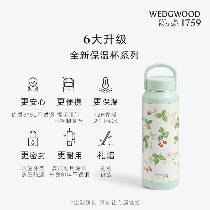 【优点】:采用优质316不锈钢,更增保温效果,12小时保暖,24小时保冰,户外、车载、运动,携带方便,防腐蚀,不易生锈,密封防漏