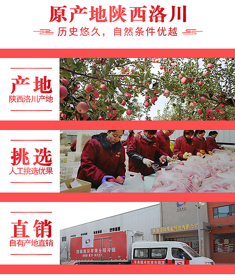 “洛川苹果/luochuanapple”地理证明商标被中华人民共和国国家工商行政管理总局商标局认定为中国驰名商标。“洛川苹果官方旗舰店”独家官方授权商与运营商,国内首家以果园种植为核心的电商服务平台。